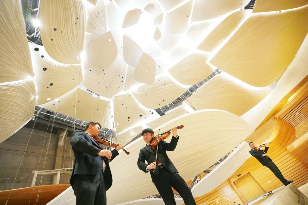 抬头望去,天花板若洁白的莲瓣层层叠叠,“花心”处,天光静静洒落。中国爱乐乐团的乐手站在阳光下,琴弓飞舞,畅想未来——昨天,许多乐迷和音乐家期待已久的中国爱乐乐团音乐厅及排练配套设施项目举行五方验收仪式,力争年内启用。这座音乐厅坐落在北京市朝阳区繁华商圈三里屯,毗邻工人体育场,正式运营后将结束中国爱乐乐团“无厅无址”的历史。