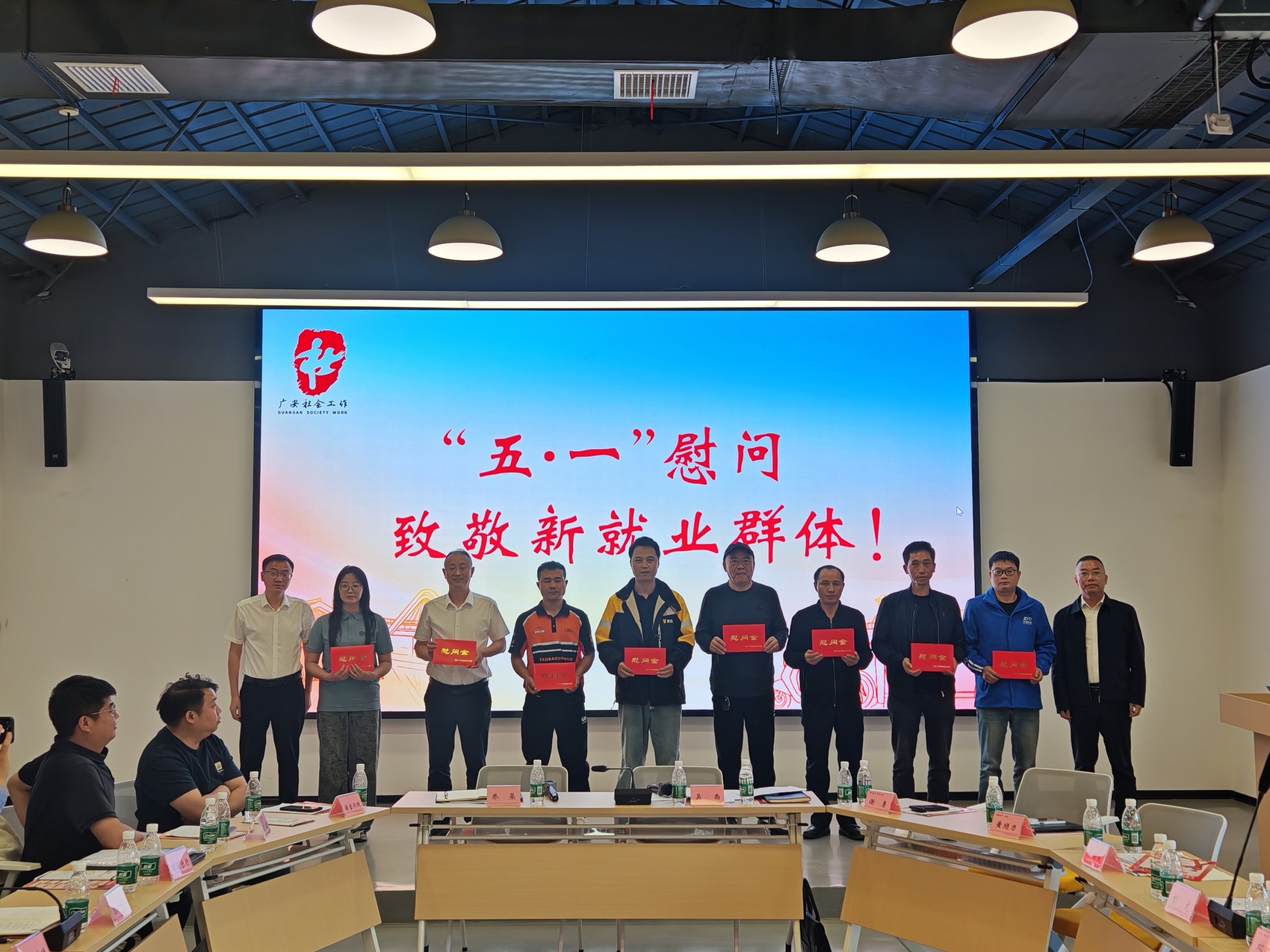 向参加活动的新就业群体代表送上“五一”节日慰问