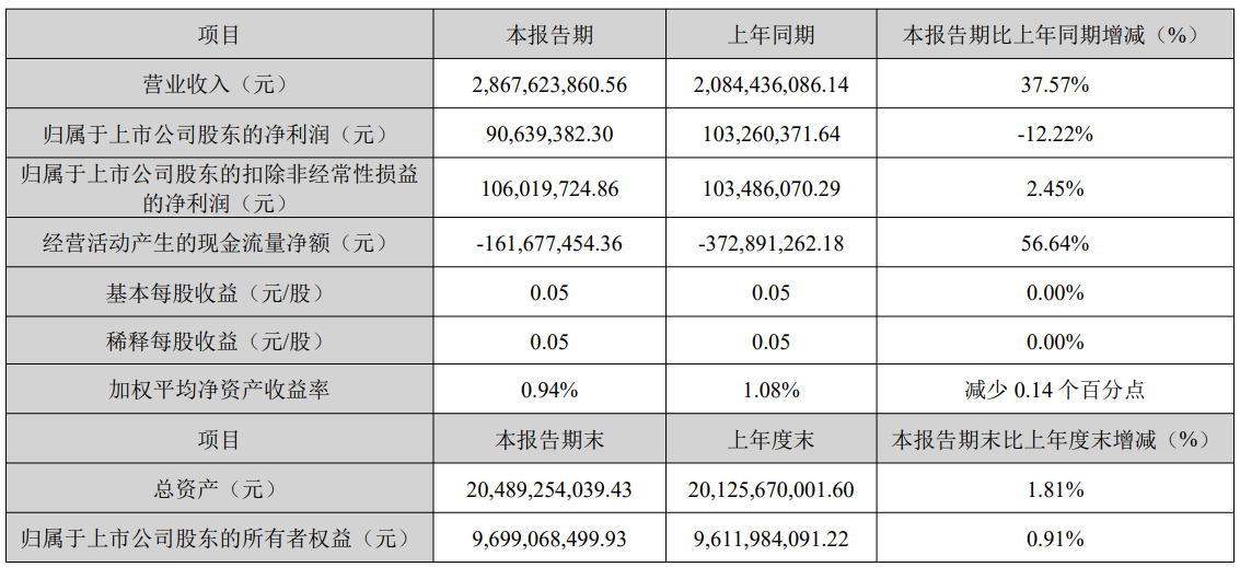 2026年一季度,川发龙蟒实现营业收入28.68亿元, 同比增长37.57%;归属于上市公司股东的净利润9063.94万元,同比下降12.22%;归属于上市公司股东的扣除非经常性损益的净利润1.06亿元,同比增长2.45%。
