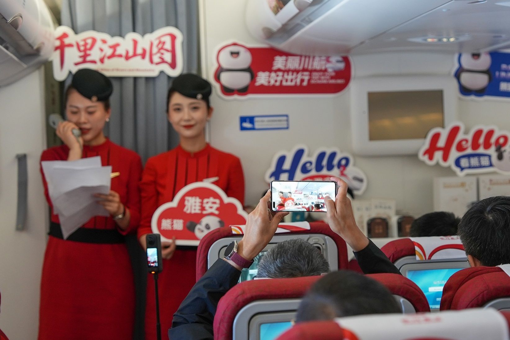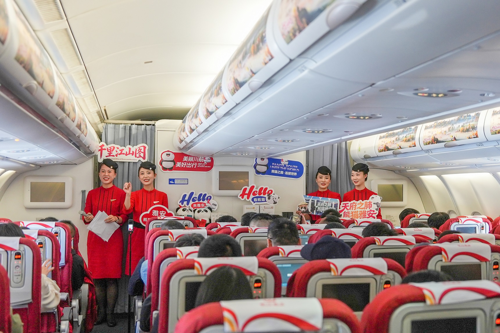 此次主题航班继续深化“航空+文旅”融合模式,以现实版“千里江山图”为主线,通过趣味知识互动、特色文旅礼赠等形式,川航客舱服务部让旅客在万米高空中沉浸式感受雅安的生态魅力与人文风采,擦亮“天府之肺·熊猫雅安”文旅品牌。