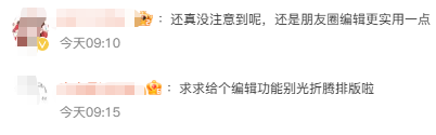 还有部分网友表示,怎么排版无所谓,现在最希望的是朋友圈可以上线二次编辑功能。