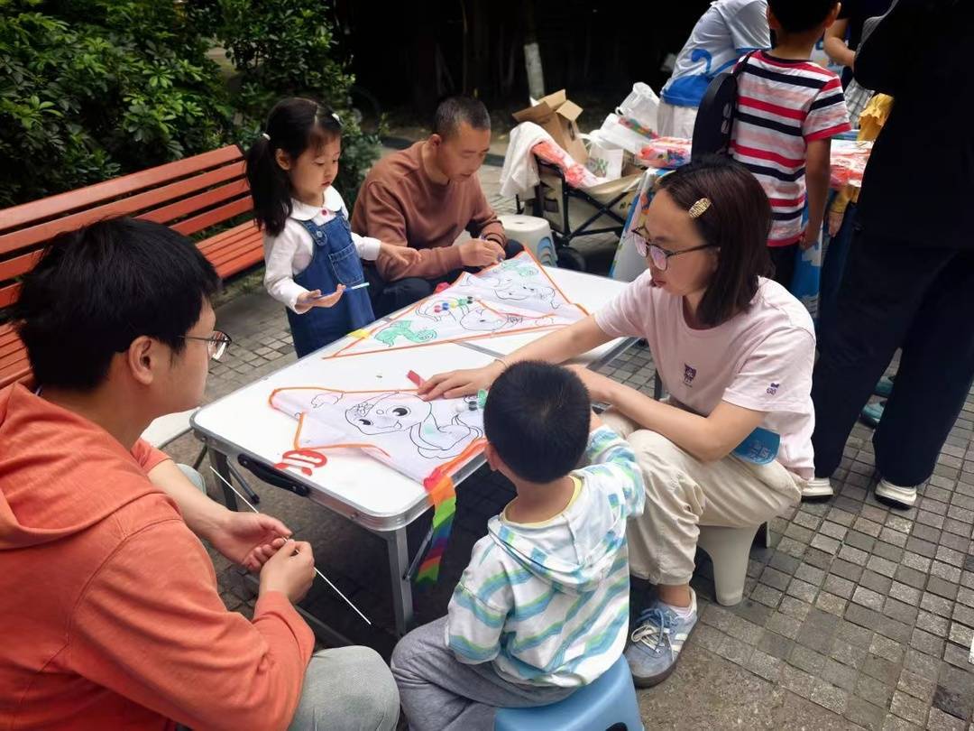 另一边,志愿便民集市人气爆棚,成为全场最热闹的风景线。免费快剪摊位前,老人有序排队;口腔义诊区,居民咨询不断;手绘风筝区,孩子们欢声笑语不断。洗地垫、清洁平底锅、纹眉体验等便民服务一应俱全,精准对接居民日常需求。“青年心愿墙” 上贴满彩色便利贴,写满青年对社区的美好期盼;五四知识问答与踢毽子等趣味游戏穿插进行,让红色文化在轻松互动中入脑入心。