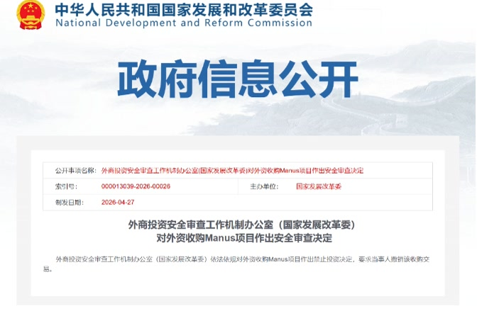近日,Manus并购被叫停一事引发不小关注。据报道,因涉及核心技术、关键领域,外资收购可能影响国家安全,外商投资安全审查工作机制办公室(国家发展改革委)依法依规对外资收购Manus项目作出禁止投资决定,要求当事人撤销该收购交易。