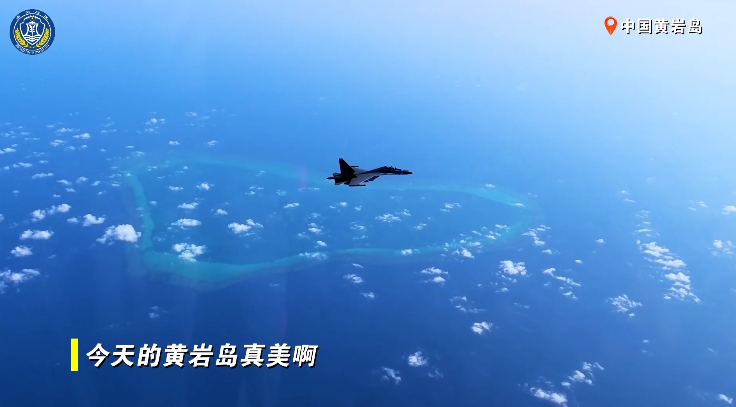 在南部战区发布的视频中,飞行员在执行任务时感叹:“今天的黄岩岛真美啊!”