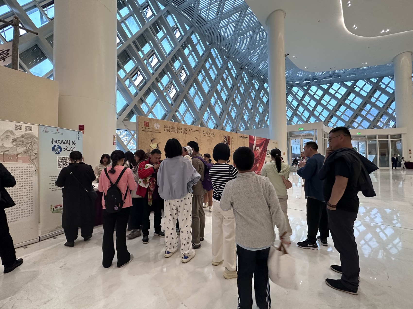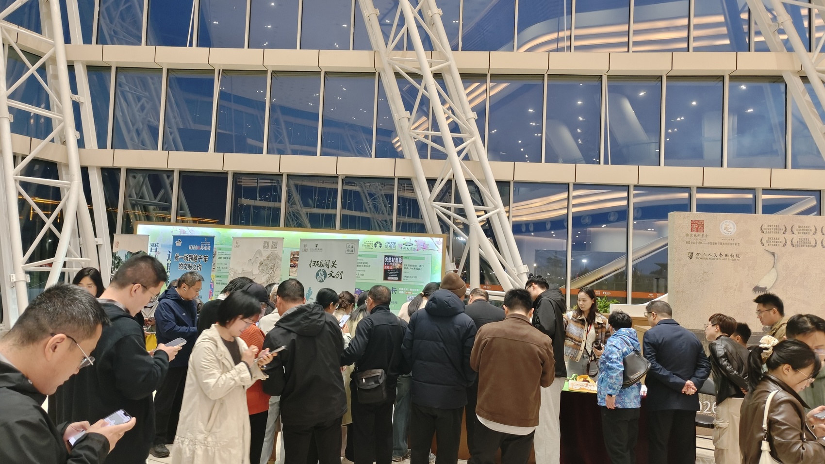 每场演出开始前,剧场前厅都十分热闹,三苏祠举办的“诗词擂台赛”吸引大量观众参与,大家踊跃背诵东坡名句,赢取文创礼品,让剧场成为传承东坡文化的生动课堂。与此同时,文创展销、文旅推介活动同步开展,全方位展现三苏祠的古祠风貌与东坡人文情怀。其中,“看话剧·0元游苏祠”的重磅福利备受关注,观众凭演出票根即可兑换三苏祠门票,有效期至2027年4月,真正实现了“看完话剧,赴东坡老家之约”的美好联结。