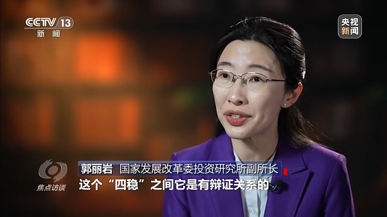 国家发展改革委投资研究所副所长 郭丽岩:这次会议再次强调“四稳”,体现了我们政策的系统性、持续性、连续性,“四稳”之间有辩证关系,对于当前而言,稳就业、稳企业有利于促进增收,带动整个消费供需循环。尤其这次强调的其实是供需双侧发力,既要扩内需又要优化供给,与此同时,我们有一些增量举措,在优化增量、盘活存量方面多下功夫。这一系列都体现着当前“四稳”的一些具体举措的着力点和方向,进一步强调了政策打出组合拳的路径。