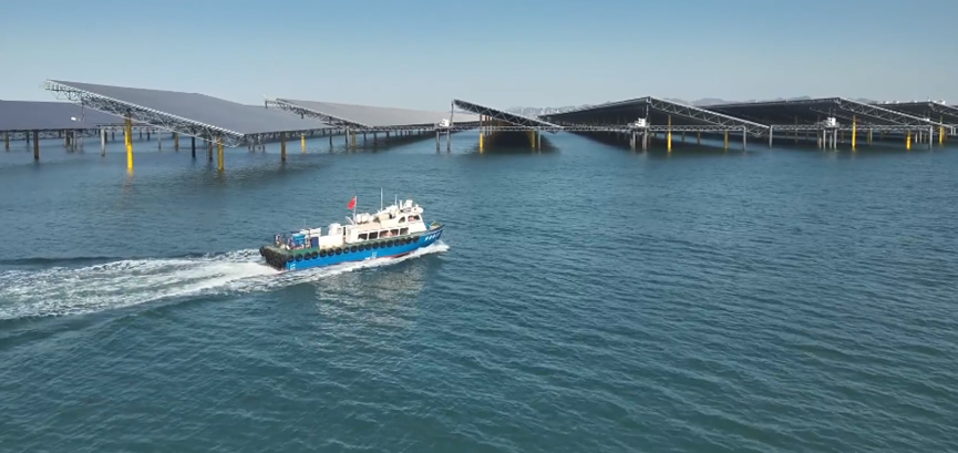 在风急浪高的莱州湾,一片由76万片光伏组件组成的“蓝色海洋”在阳光下熠熠生辉,这就是全国首座全容量并网发电的桩基式海上光伏电站。