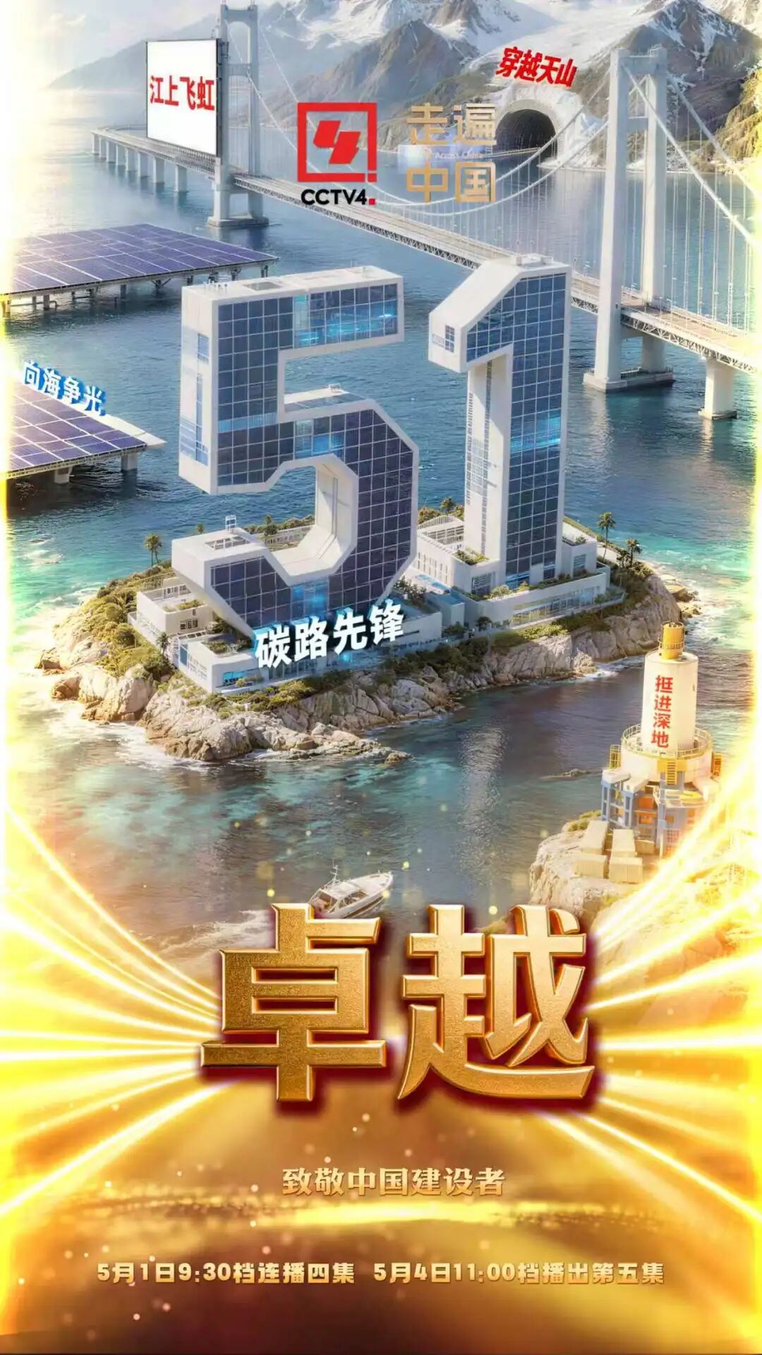 山河奔赴盛景,壮歌致敬劳动。五一劳动节来临之际,中央广播电视总台华语环球节目中心纪录片部《走遍中国》栏目匠心打造的《卓越》系列纪录片最新5集将于5月1日上午9:30档在CCTV-4四集连播,5月4日上午11:00档播出第五集,带领观众深入超级工程现场,领略其背后鲜为人知的攻坚历程,看见新时代劳动者以实干筑山河、以匠心铸卓越的动人风采。