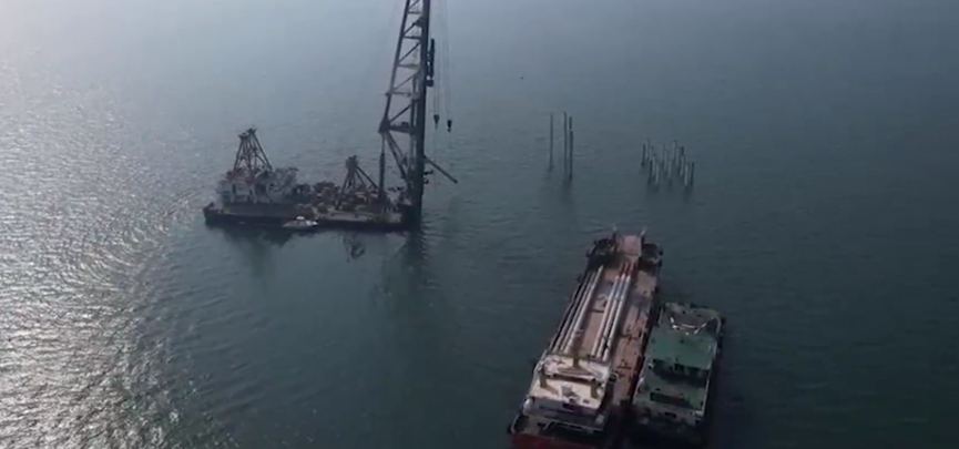 面对诸多“不可能”,工程团队偏要“啃硬骨头”。从放弃万根水泥桩的最初设计,到量身研发高精度作业船,从攻克海上打桩难题,到探索适配海上环境的运维模式。
