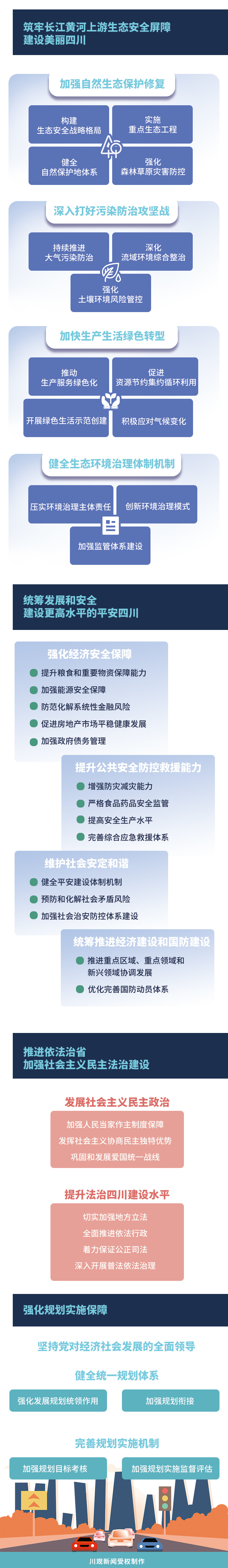 《纲要草案》围绕建设具有全国影响力的重要经济中心、科技创新中心、改革开放新高地、高品质生活宜居地,打造带动全国高质量发展的重要增长极和新的动力源,从14个方面对“十四五”时期全省经济社会发展的重点任务进行了系统谋划安排。