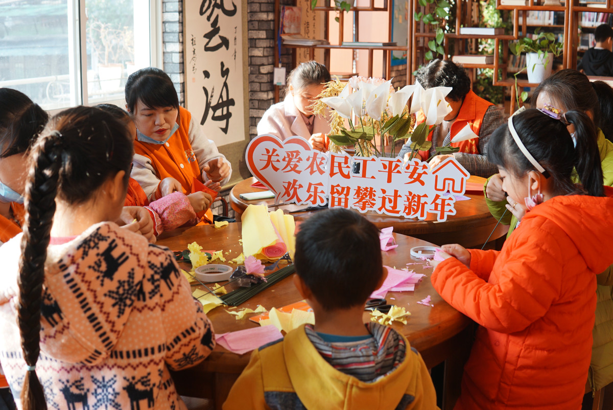 1月29日一大早,攀枝花市东区弄弄坪街道大地湾社区活动中心热闹起来,社区工作人员和志愿者齐聚一堂,自己动手折纸花、做衍纸画、写春联,为就地过年的农民工准备新年礼物。