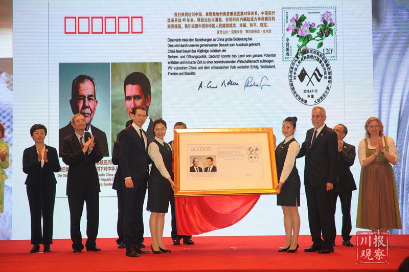 当日,奥地利驻成都总领事馆商务处也正式揭牌,现场还发布了奥地利总统总理访华纪念封。