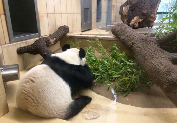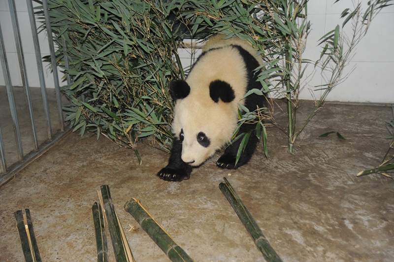 最后,还是工作人员拿出了竹子和竹笋,它才“被逼出笼”。