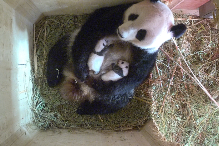 ▲所生4胎5只大熊猫,均是在自然交配受孕,为欧洲新纪录;