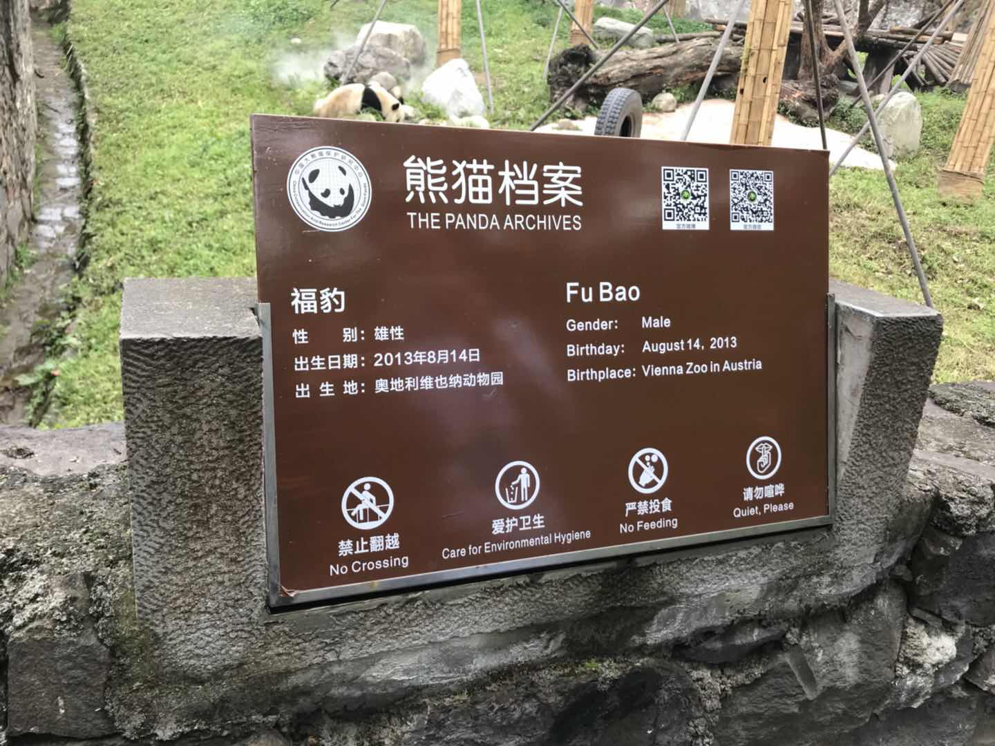 2013年8月14日在奥地利美泉宫动物园出生的“福豹”,2015年11月7日回国,现居住在都江堰基地。“福豹”性格安静含蓄,喜欢爬树,喜欢一个人玩耍,目前体重118公斤。