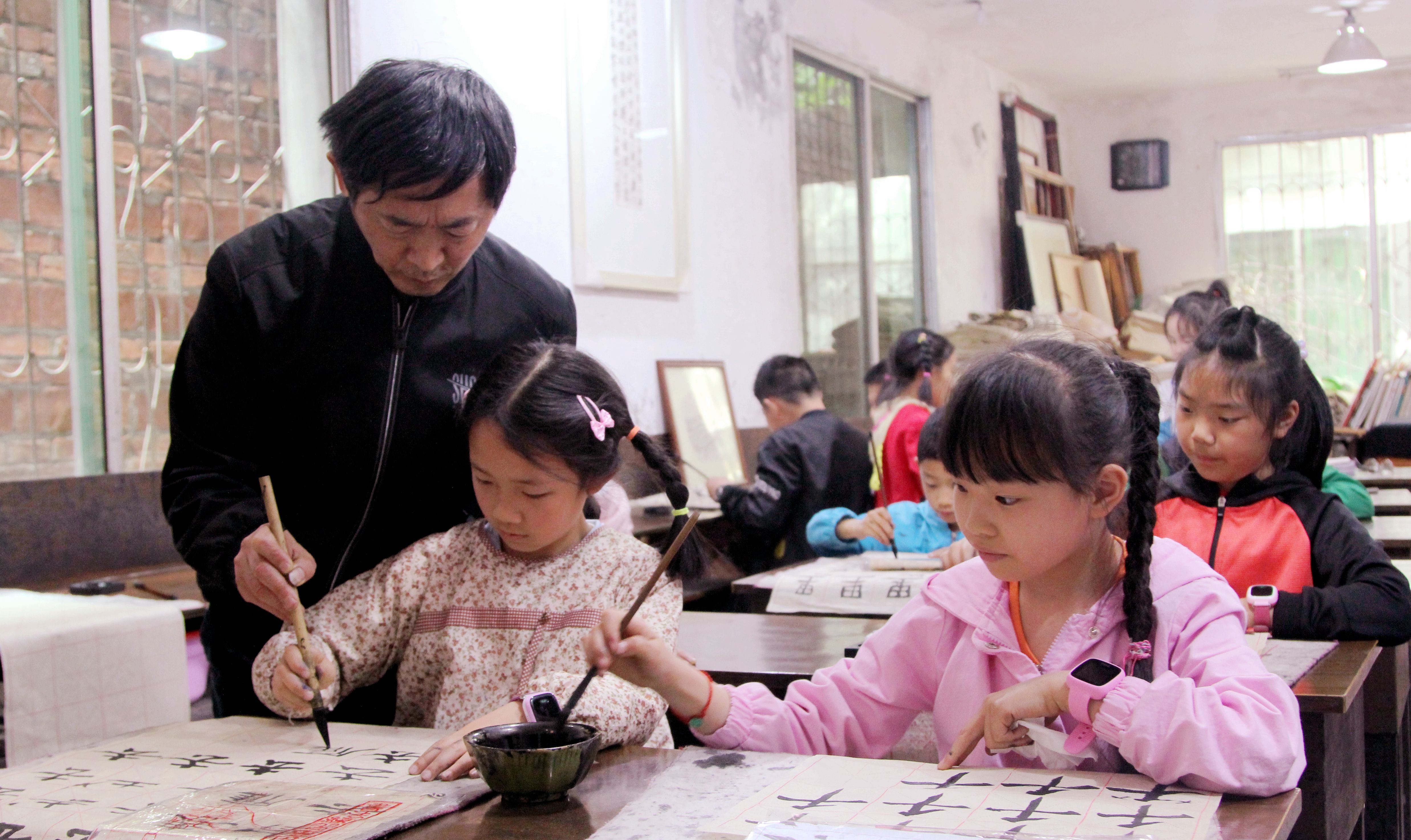 2002年,陈敦良从简阳回到仁寿。在仁寿城区街心广场办起书法培训班,开始以书法育人为主业。