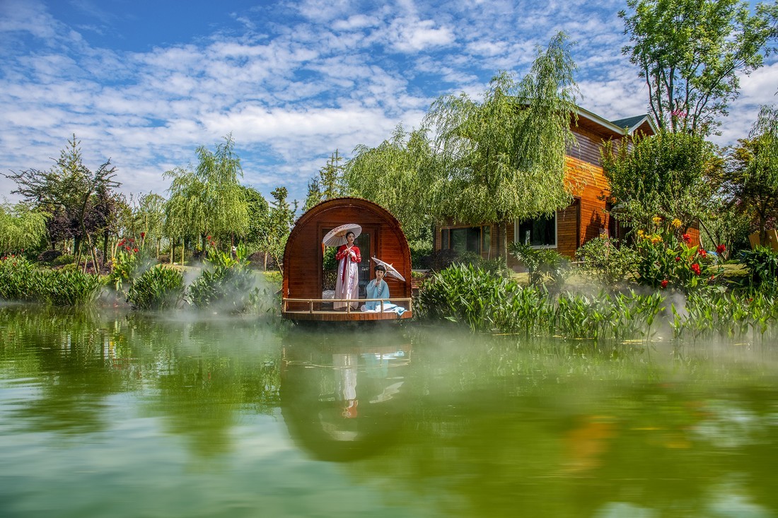 和盛的生态“底色”并非与生俱来,而是抓住一次次机遇“精雕细琢”而成。如今,备受瞩目的鲁家滩,多年前还只是金马河边一处一点不起眼的水域。2016年,鲁家滩整治拉开序幕。通过拆除违建、梳理环境、修建绿道,鲁家滩成了远近闻名的网红打卡点。而以鲁家滩为起点建设的65公里北林绿道环线,构建起北部乡村完整的交通体系,成为温江“北林”区域农商文旅体养产业融合发展的最前沿。和盛镇抓住这一契机,加快推动生态价值转化,在绿道沿线形成“公园+”消费场景。目前,竹·瓦里舍乡村酒店、康家濠湿地公园、318越野车营地、花仙境全国花木直播基地等项目逐一呈现,新尚植物研究院、鲁家滩水上世界、水族小镇、鲁家滩运动公园、鸿泉东宫等项目正稳步推进。