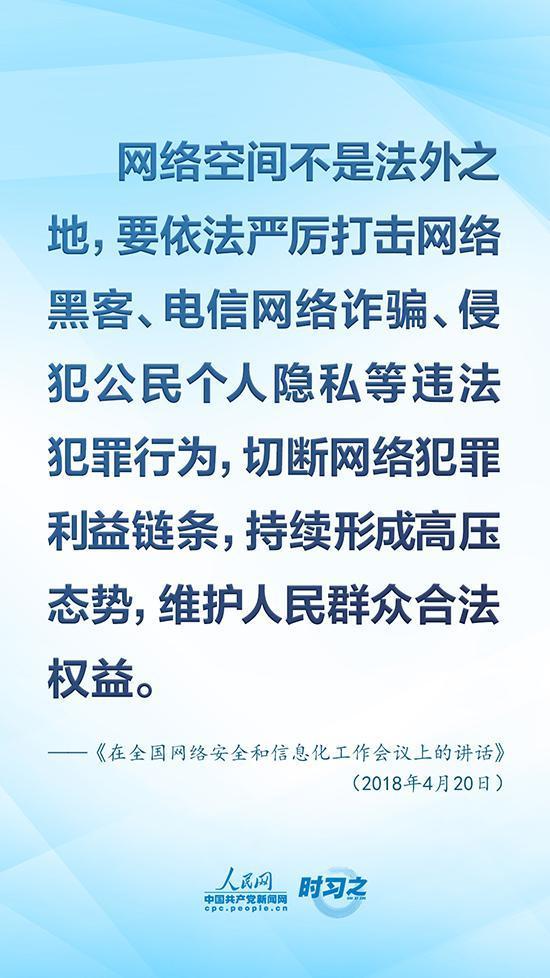 党的十八大以来,以习近平同志为核心的党中央从进行具有许多新的历史特点的伟大斗争出发,重视互联网、发展互联网、治理互联网,统筹协调涉及政治、经济、文化、社会、军事等领域网络安全和信息化重大问题,作出一系列重大决策、实施一系列重大举措,推动我国网信事业取得历史性成就,走出一条中国特色治网之道。人民网·中国共产党新闻网“时习之”栏目撷取了《习近平关于网络强国论述摘编》中有关“维护国家网络安全”的10句金句,以飨读者。
