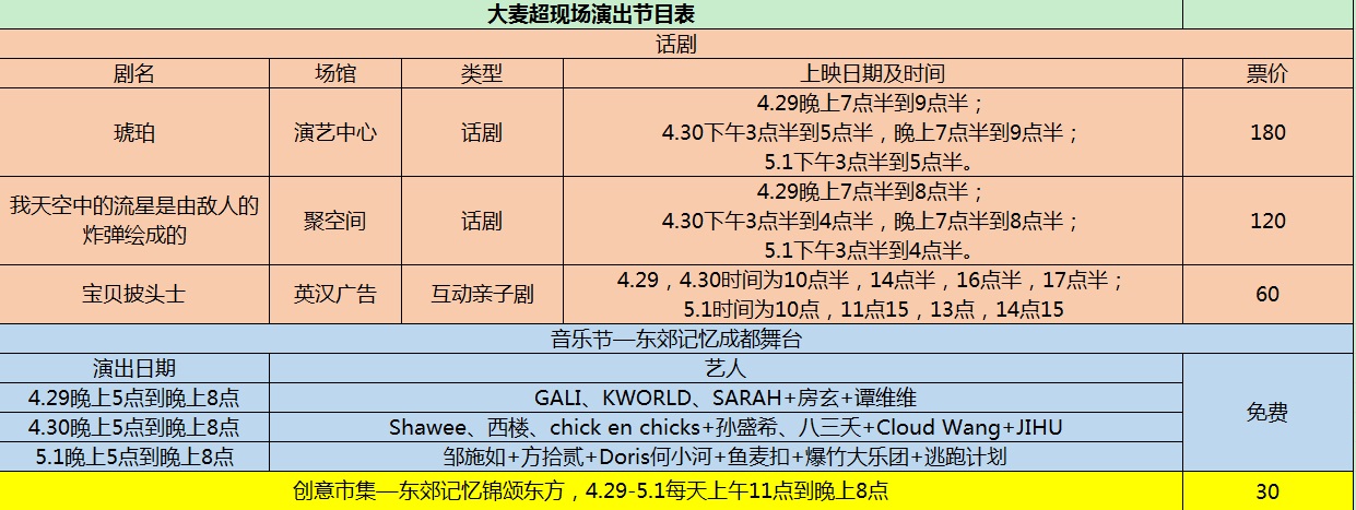 4月29日—5月1日五一小长假,由阿里巴巴文化娱乐集团现场娱乐事业群主办、成都市成华区相关单位协办的“大麦超现场”嘉年华首站,将抵达成都市的东郊记忆。