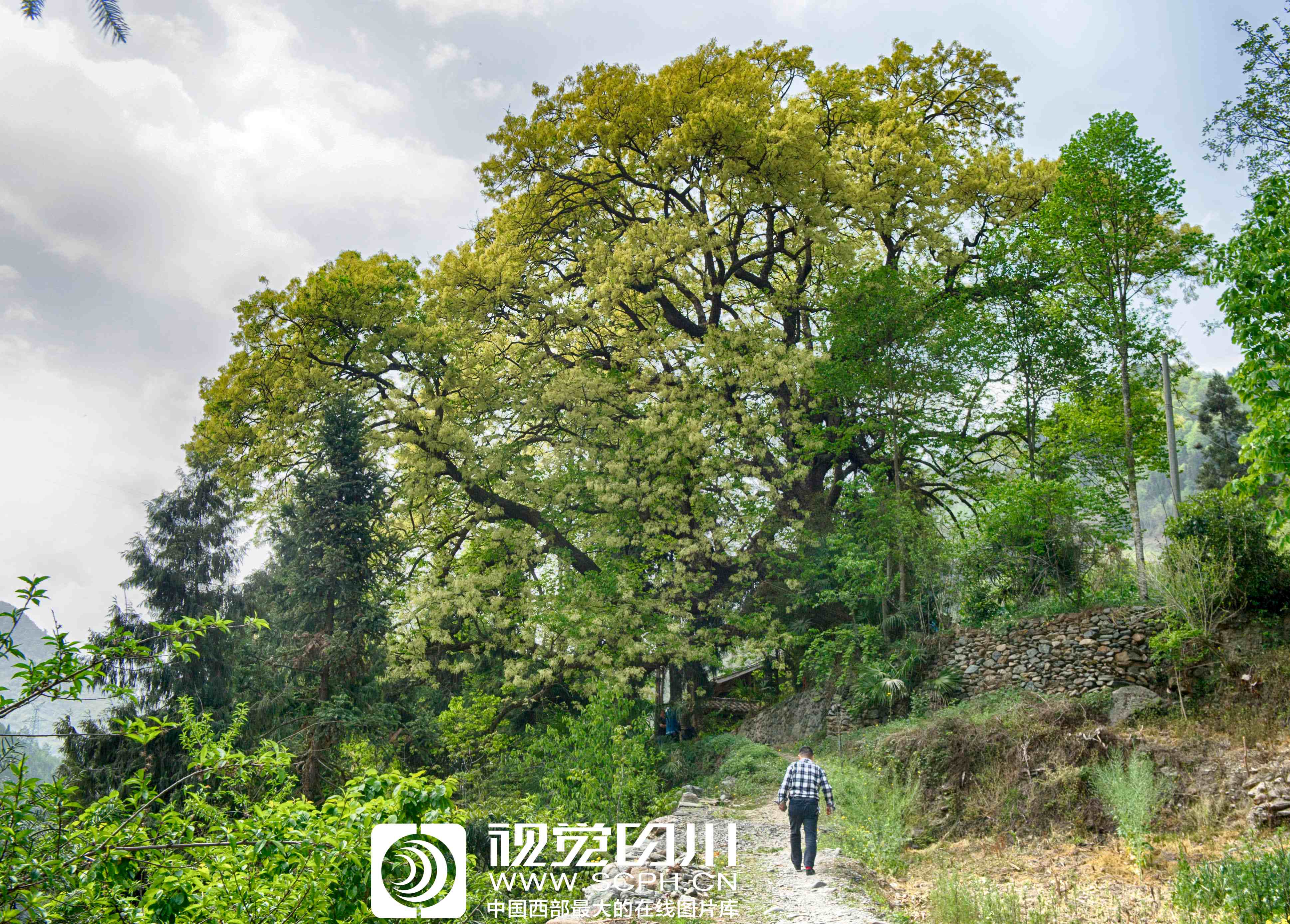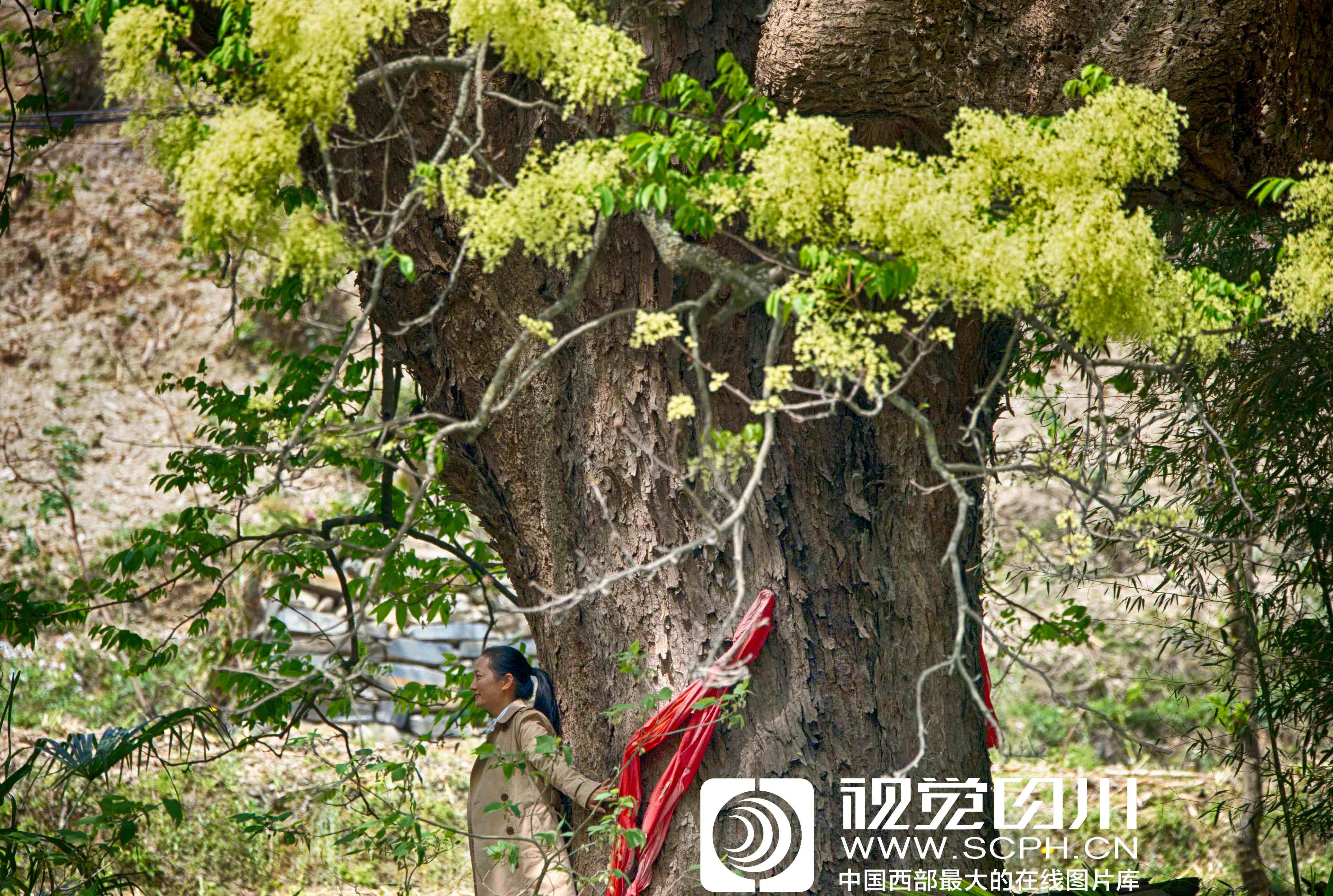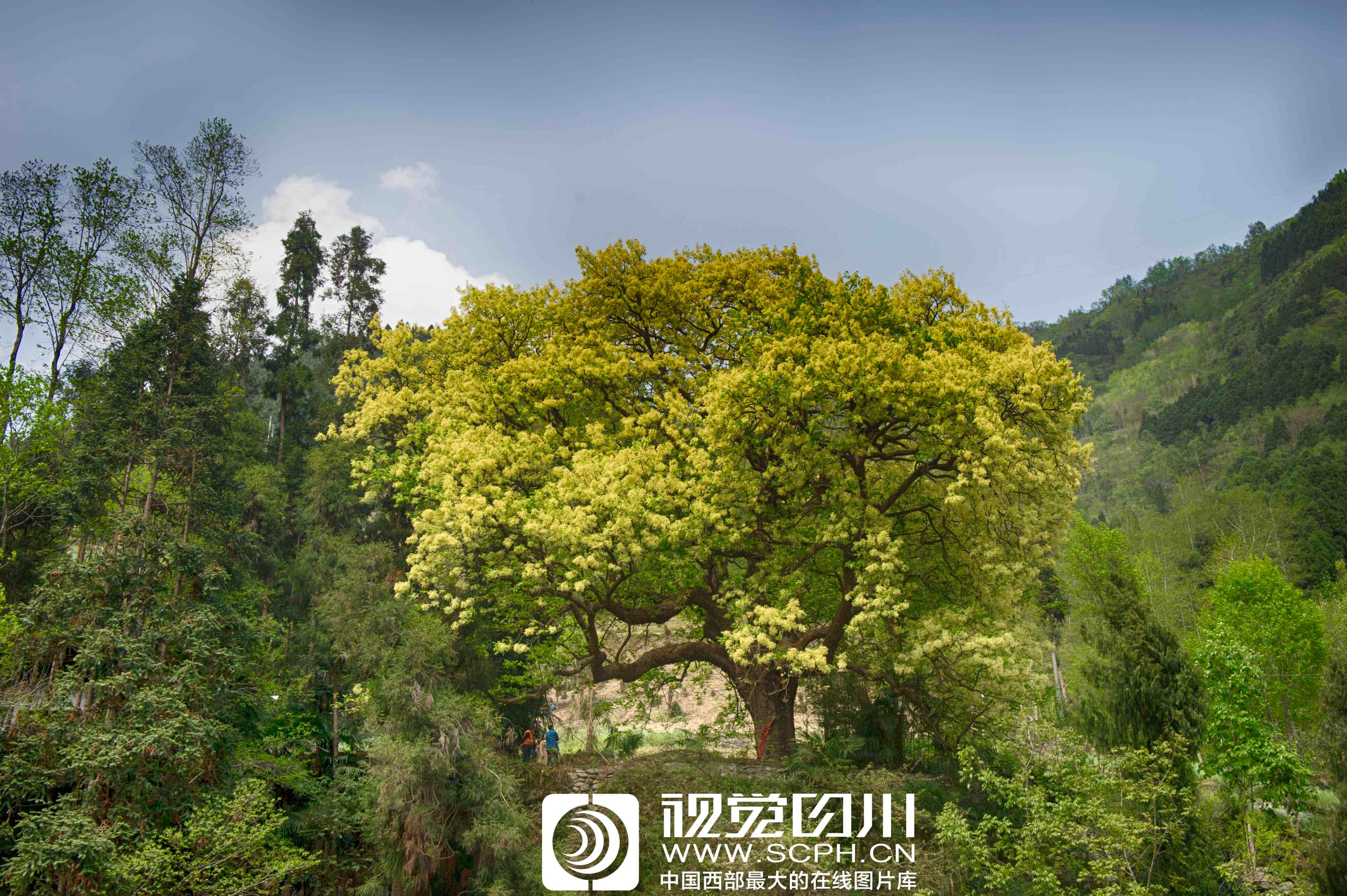 每年的4月,谷雨前后,平武县水晶镇马元村村口的巨大珂楠树开始进入花期,满树淡黄色的小花,风吹过洒落一地的小花瓣。