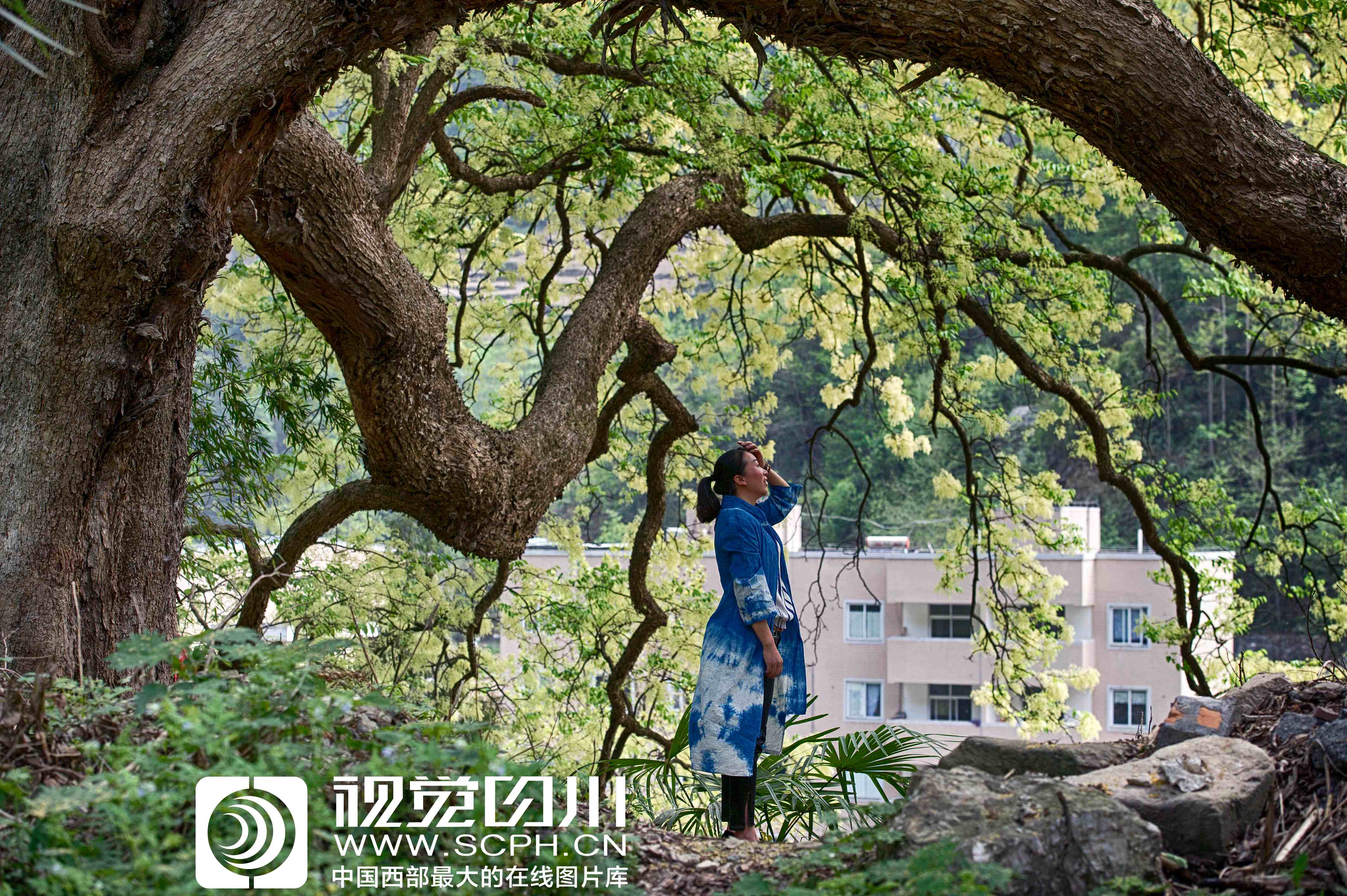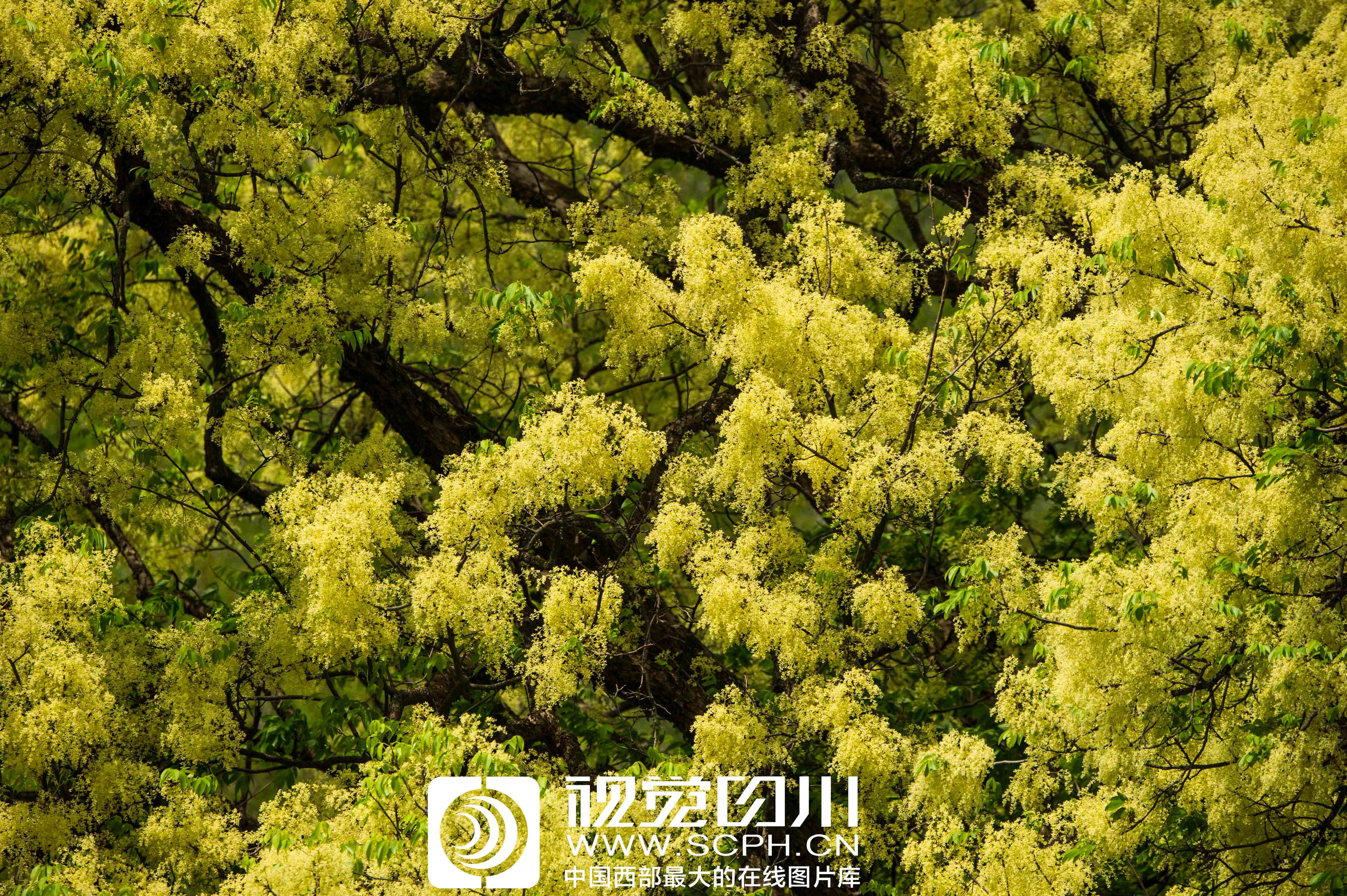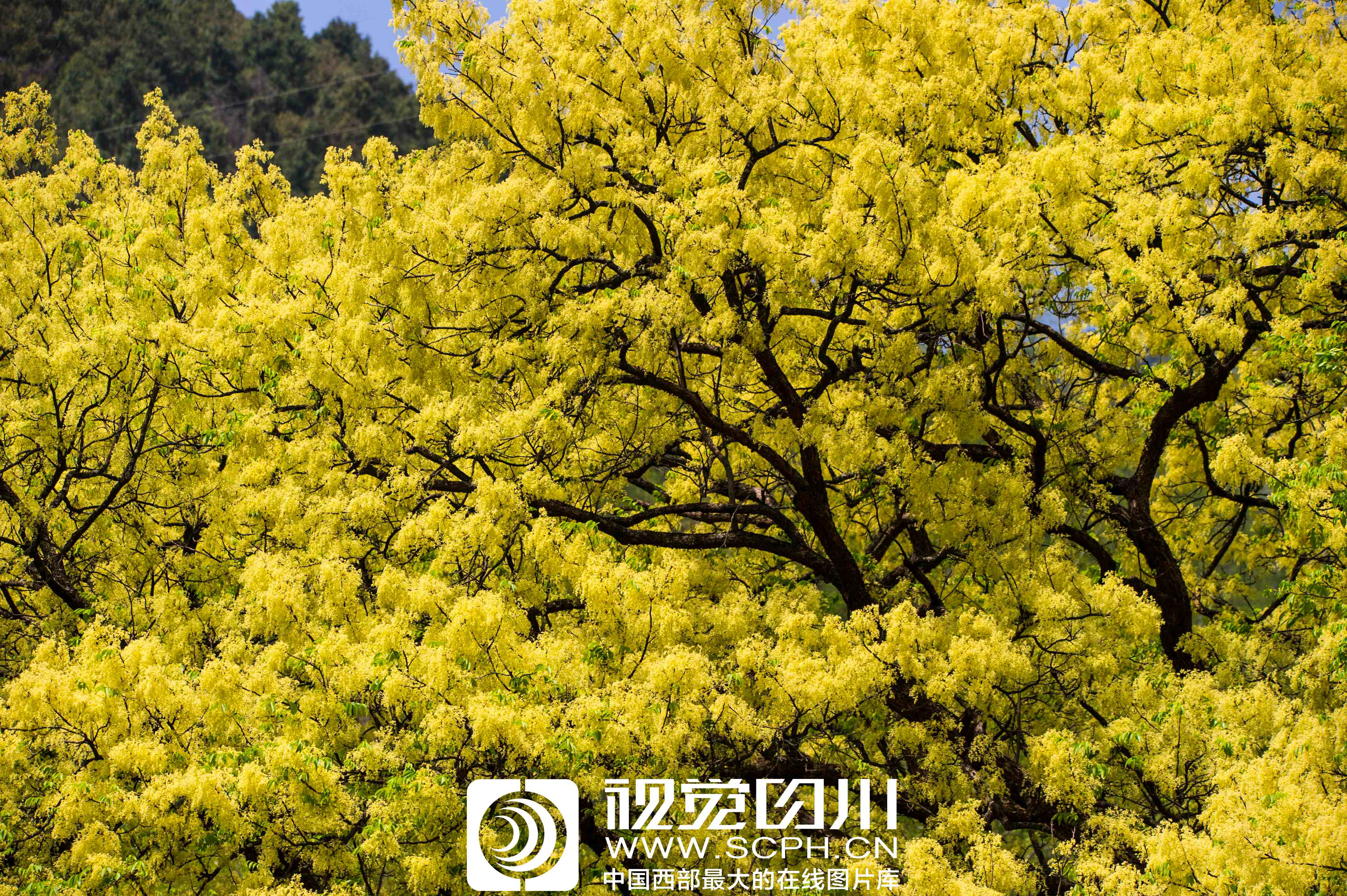 每年的4月,谷雨前后,平武县水晶镇马元村村口的巨大珂楠树开始进入花期,满树淡黄色的小花,风吹过洒落一地的小花瓣。