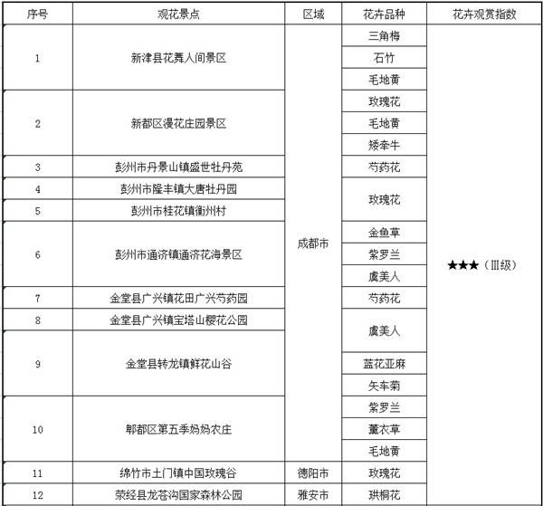 五一小长假将至,四川大地迎来赏花最佳时节。4月28日,四川省林业厅发布第八期赏花指南。
