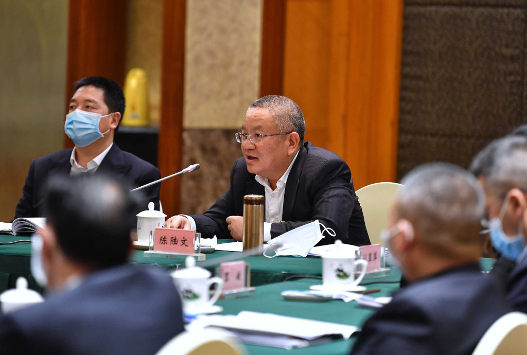 陈陆文代表(左二)围绕不断提升营商环境竞争力提出建议。