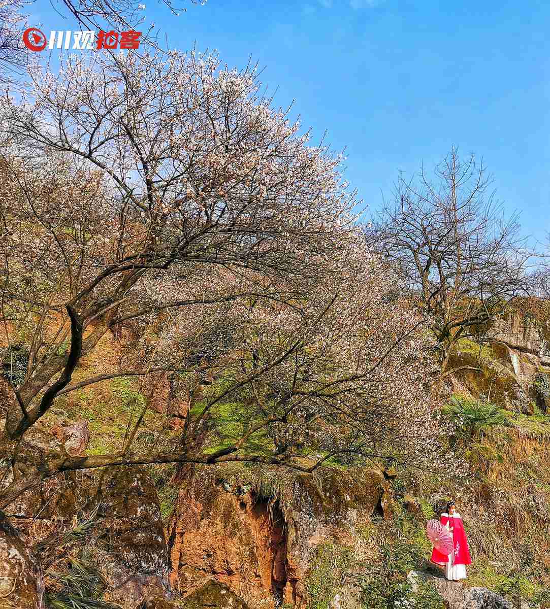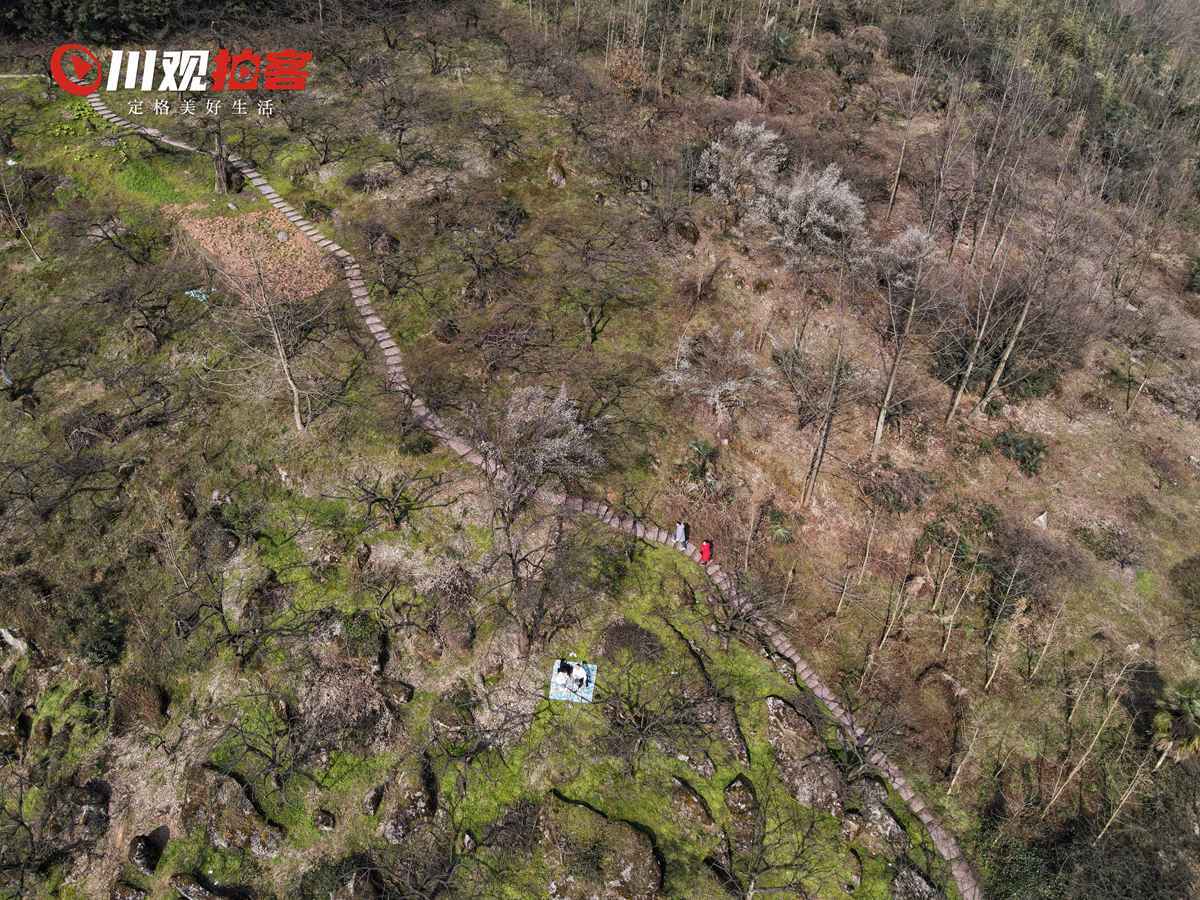 2月1日,明媚的阳光下,成都市大邑县雾山乡大坪山上千亩青梅花竞相开放,赏花的人们络绎不绝,满山的青梅花犹如寒冬撒下的片片洁白雪花。青梅花目前正值盛花期,整个开放时间将持续到2月中旬。