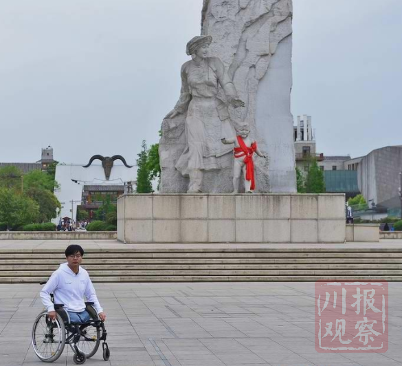 季春里的阳光与风,让郑海洋有些兴奋,他的轮椅,在北川新县城新生广场上,肆意地前进、后退、左转、右转……某个瞬间,他幻想着自己能像《纵横四海》里的周润发一样,牵起美丽的女孩,就这样在轮椅上起舞。