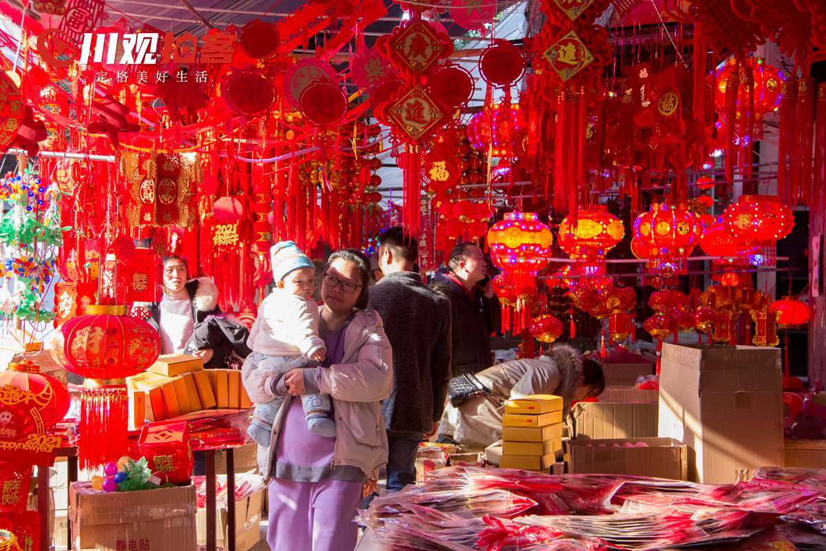 新年将近,城市街头年味愈浓。2月1日,广安城北大市场,过年用的春联、贴画等喜庆用品卖得红红火火,很多市民来此购买过年用品,带回家过一个喜庆祥和的牛年。