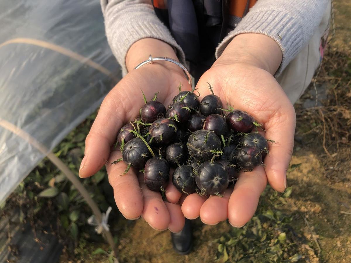 而在桃林之中,若不特别留意,则很难发现这些田间的新面孔——红果参。红果参又名蜘蛛果,本是当地山间的野果,因其独特的口味和丰富的营养价值,如今摇身一变,成为食用与药用价值兼具的“网红水果”。