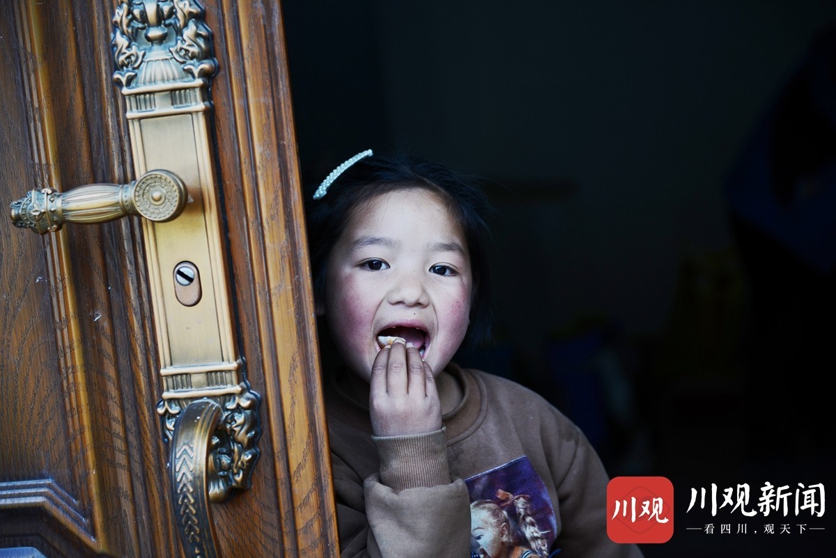 这是一栋粉着白墙的砖房。冬日暖阳下,巴木玉布木13岁的大女儿巫其拉布木正带着弟弟妹妹在门前小院玩耍,欢乐的笑声极具感染力。