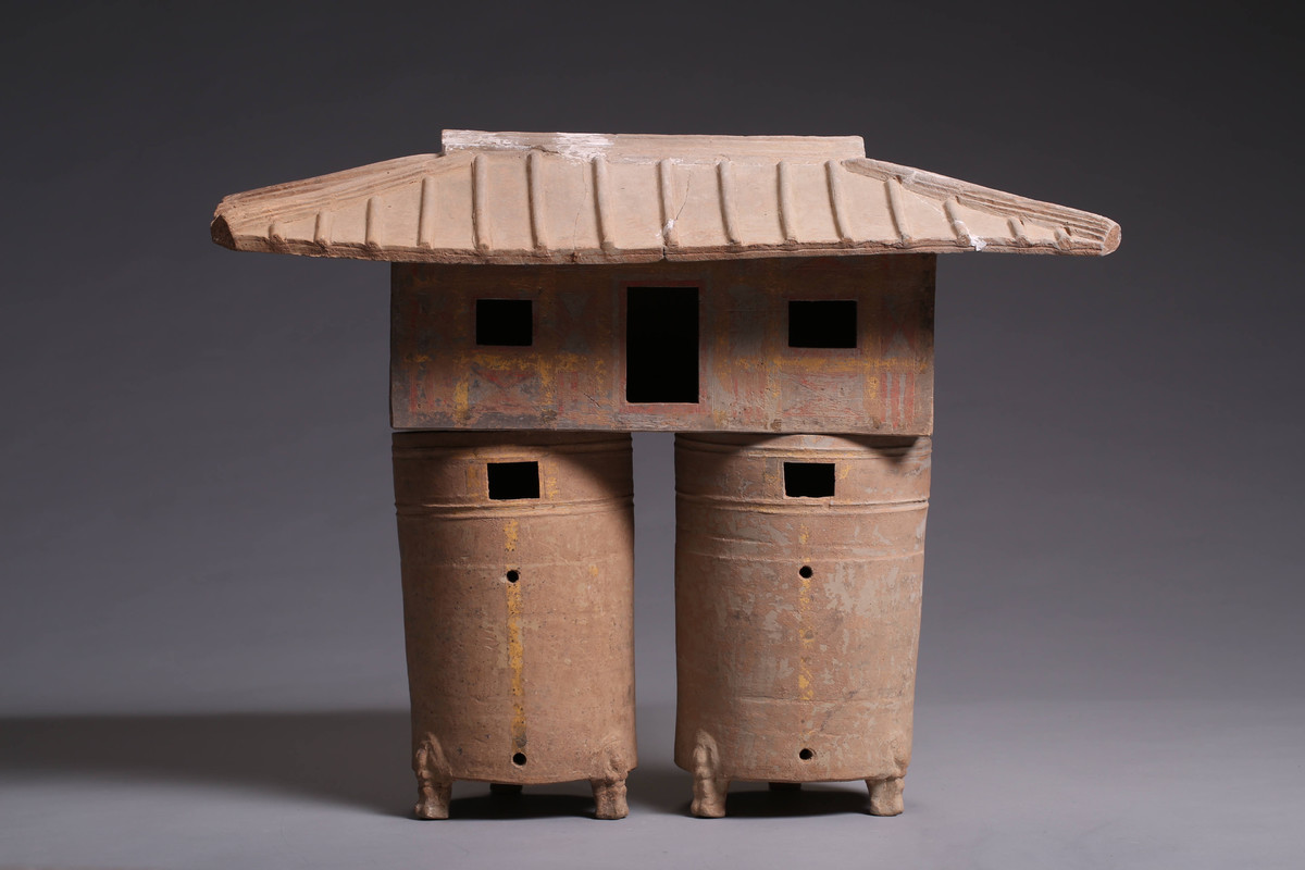 本次展览展出了两件来自焦作的汉代彩绘陶仓楼,其体量之高大、构造之复杂、工艺精美,可谓是古代建筑的“炫技”之作。