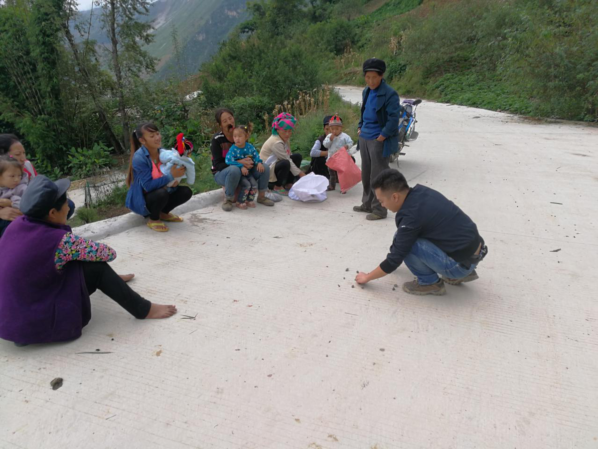 2017年9月29日,卡哈洛村第一书记杨洋利用九宫格石头摆布法,为群众讲解花椒种植间距要点 受访者供图