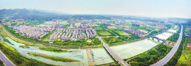 四月二十二日,鸟瞰北川新县城。记者郝飞 摄