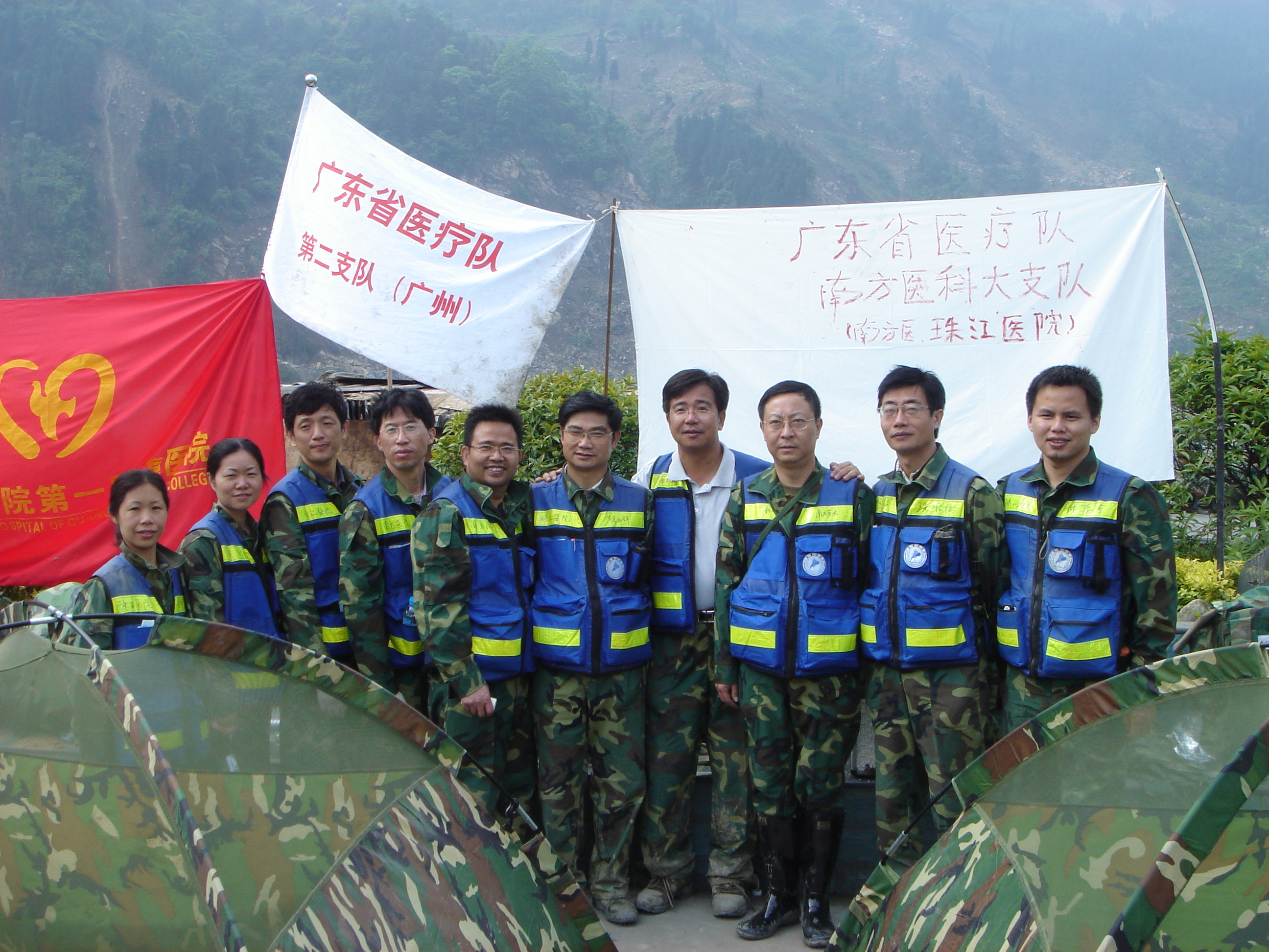 2016年退休,时任广东省卫生厅副厅长、广东省抗震救灾医疗队领队,带领110名医护队员在震后第一时间挺进映秀,成为首支进入震中的“外省”医疗队。