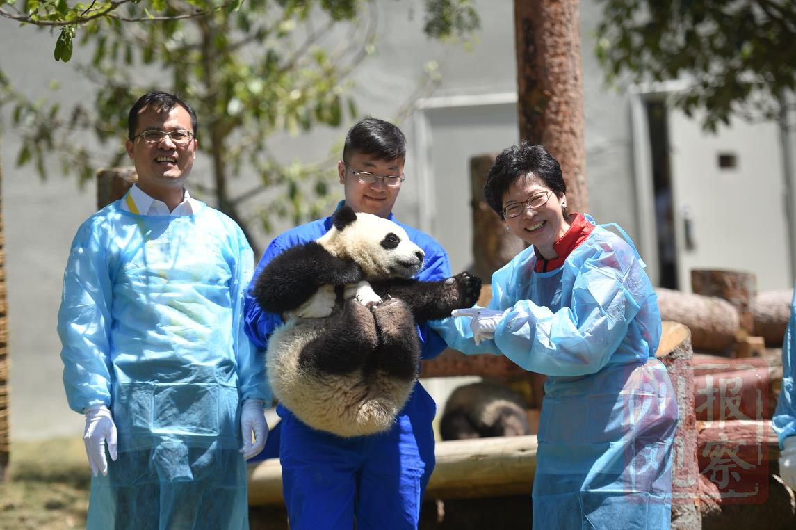 2016年5月11日,时任香港特区政府政务司司长林郑月娥女士与大熊猫亲切互动。