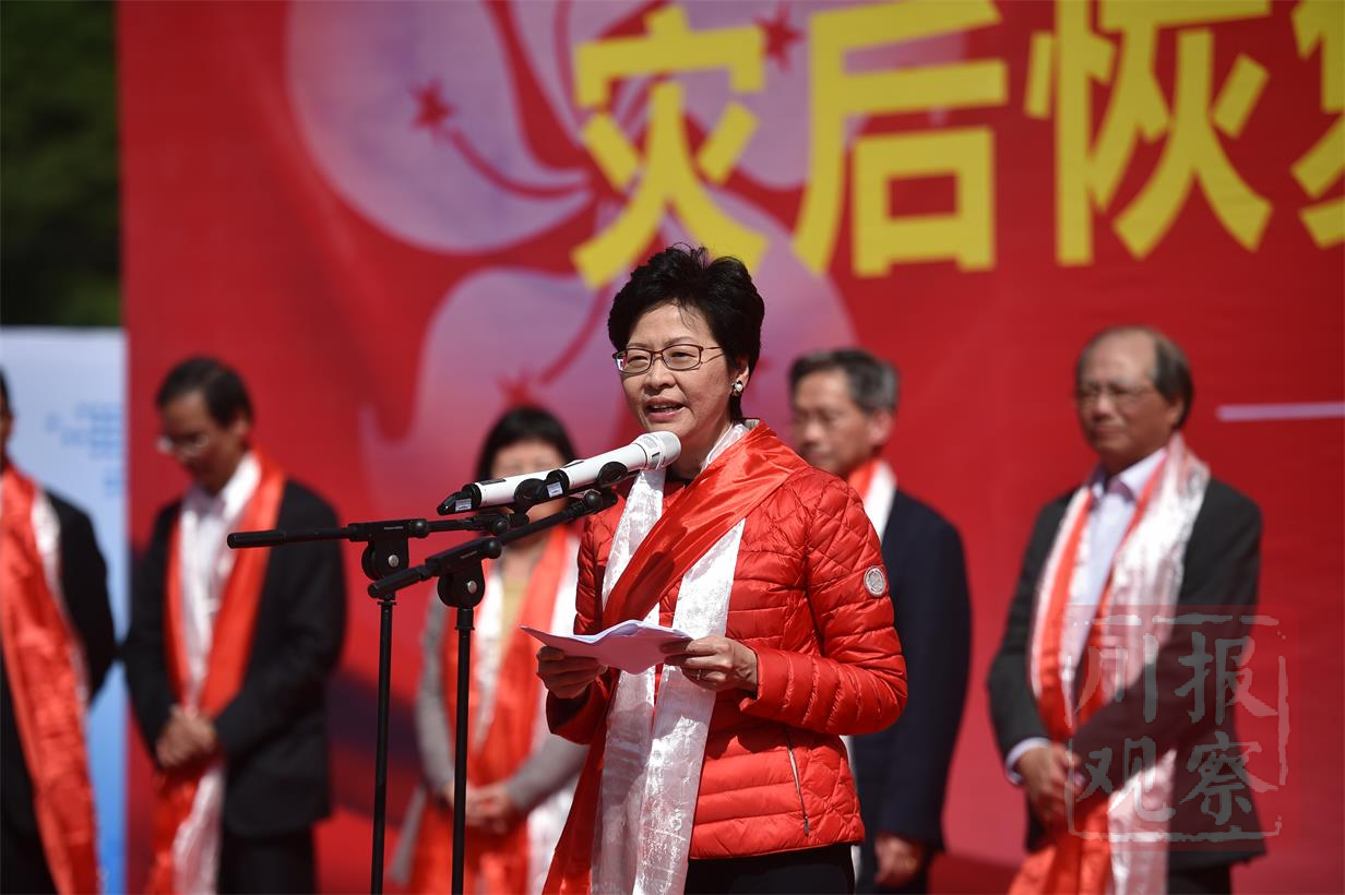 在川期间,林郑月娥一行出席省道303线(映秀至卧龙段)贯通仪式和中华大熊猫苑开园仪式。“这意味着历时八年的特区援建工作也将圆满结束。”林郑月娥给香港特别行政区在四川灾后重建的工作给出了“满分”的评价。