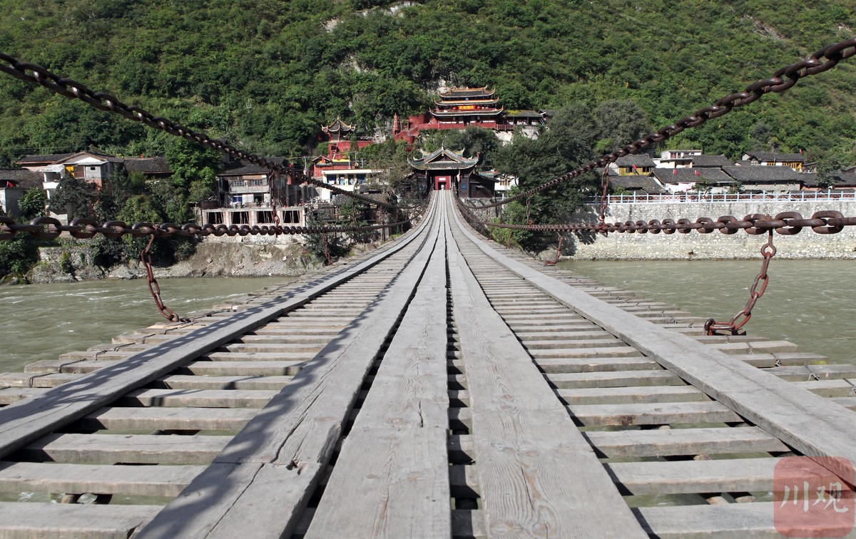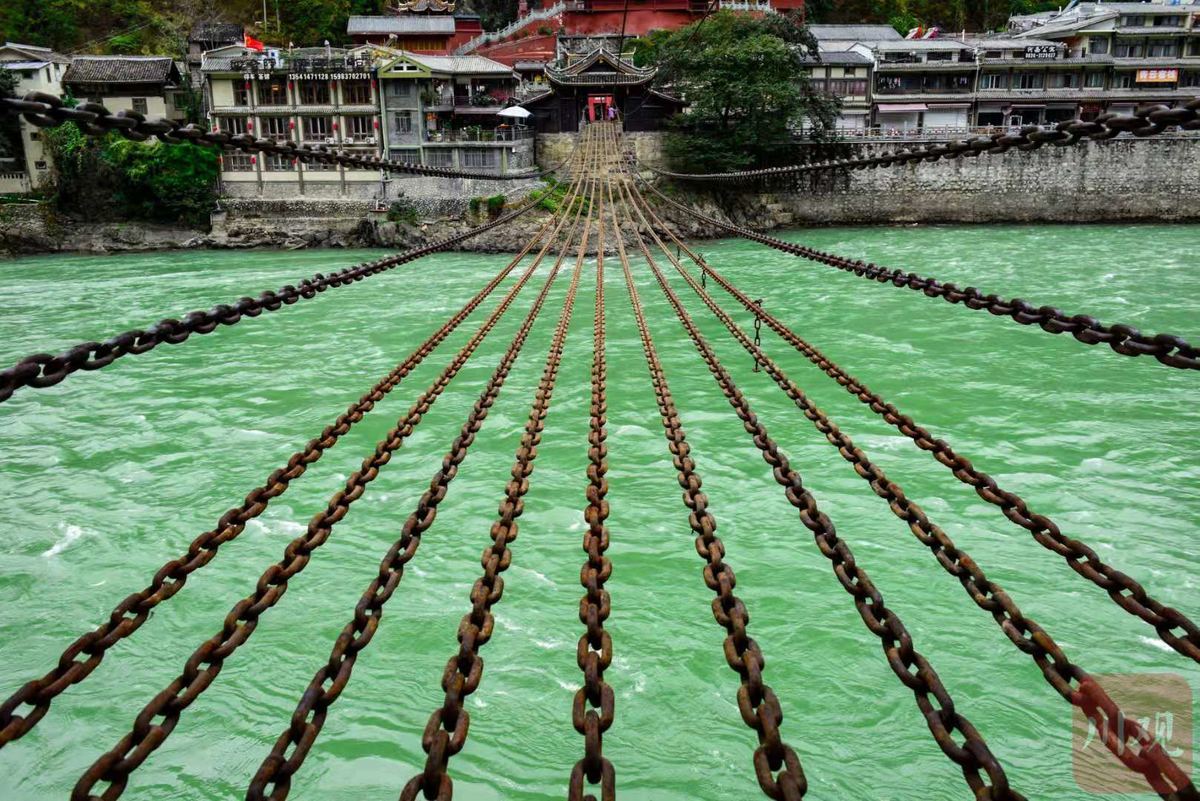 2月1日,位于甘孜州泸定县城晃晃悠悠的泸定桥上,前来体会瞻仰的游客络绎不绝,波涛滚滚的大渡河从桥下奔涌而过。泸定桥东桥头大门口两边的对联赫然写着12个大字“飞身可夺天堑 健步定攀高峰”。