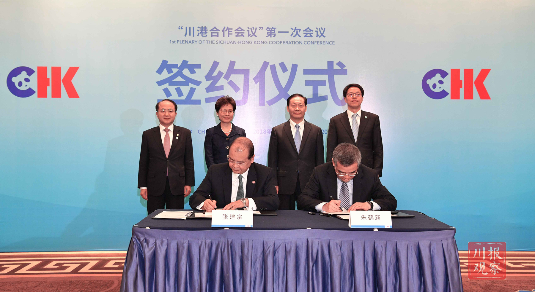 四川省副省长朱鹤新、香港特区政府政务司司长张建宗分别代表四川省政府和香港特区政府签署《川港合作会议合作机制安排》《川港高层会晤暨川港合作会议第一次会议备忘录》。根据双方建立的合作机制,今后将根据需要不定期举行会议,川港双方就各政策范畴的具体合作事项可视情况以会议纪要或备忘录体现有关共识,并由相关对口部门于工作层面跟进落实。在第一次会议备忘录中,双方同意在“一带一路”建设、文化创意产业、科技、金融、青年发展、建筑、教育、中医药和食品安全、旅游、机场建设管理以及便利港人在川发展等11个领域加强合作,并由双方对口部门建立联络机制跟进落实。