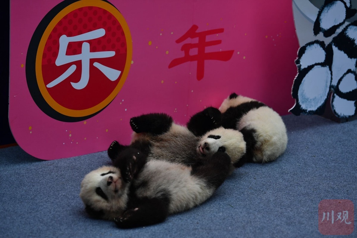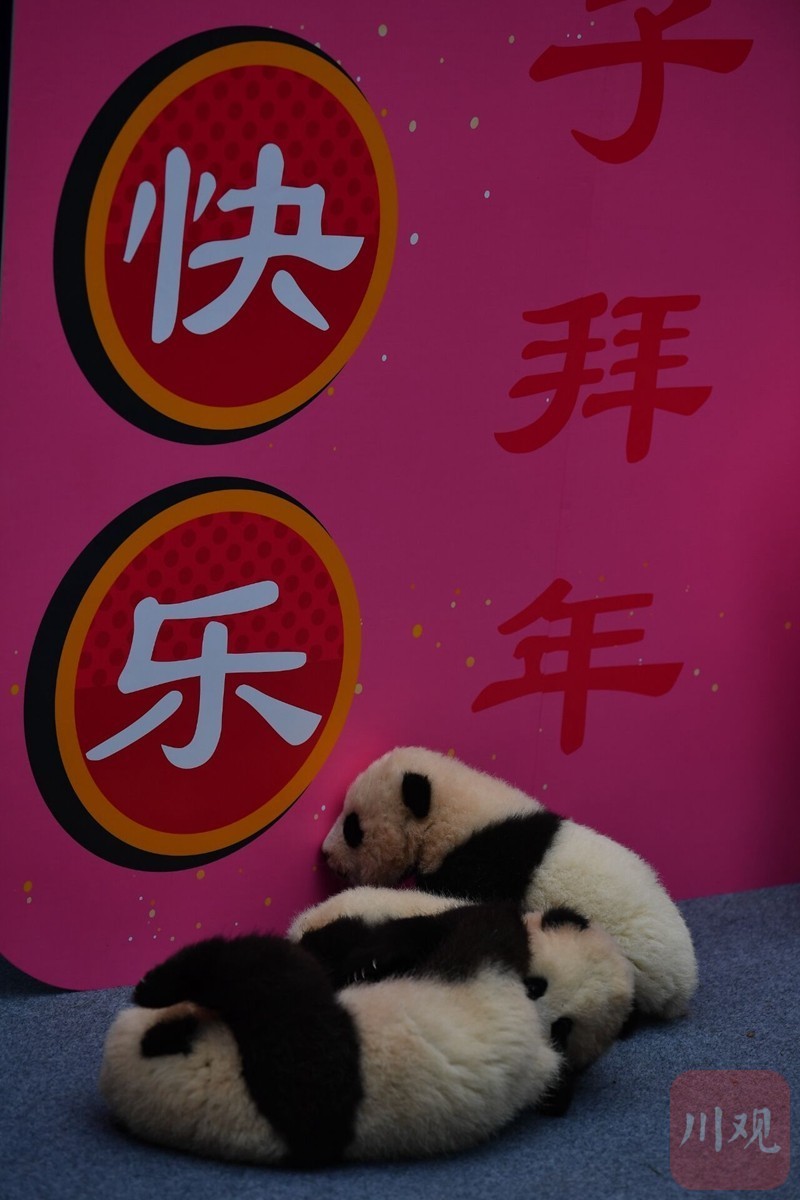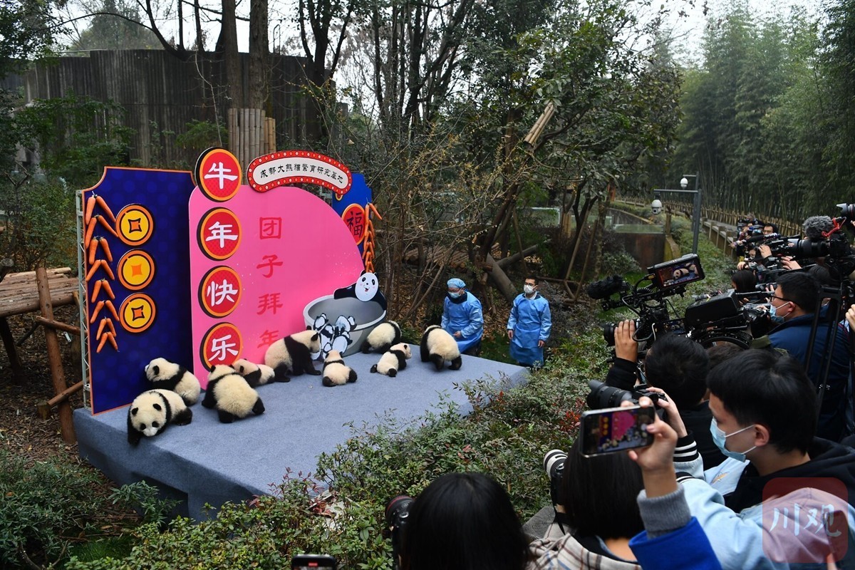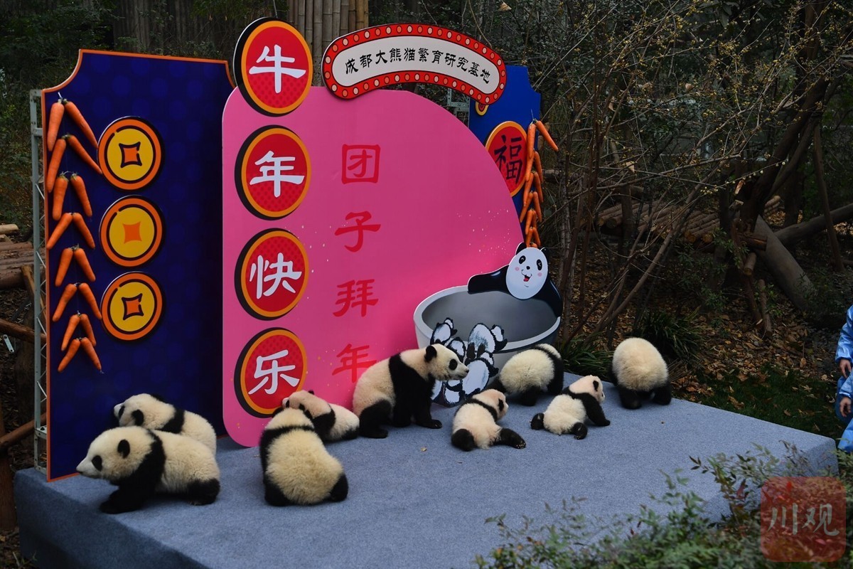 2月4日,在成都大熊猫繁育研究基地月亮产房,9只2020级大熊猫齐齐亮相,组团给大家拜年了!