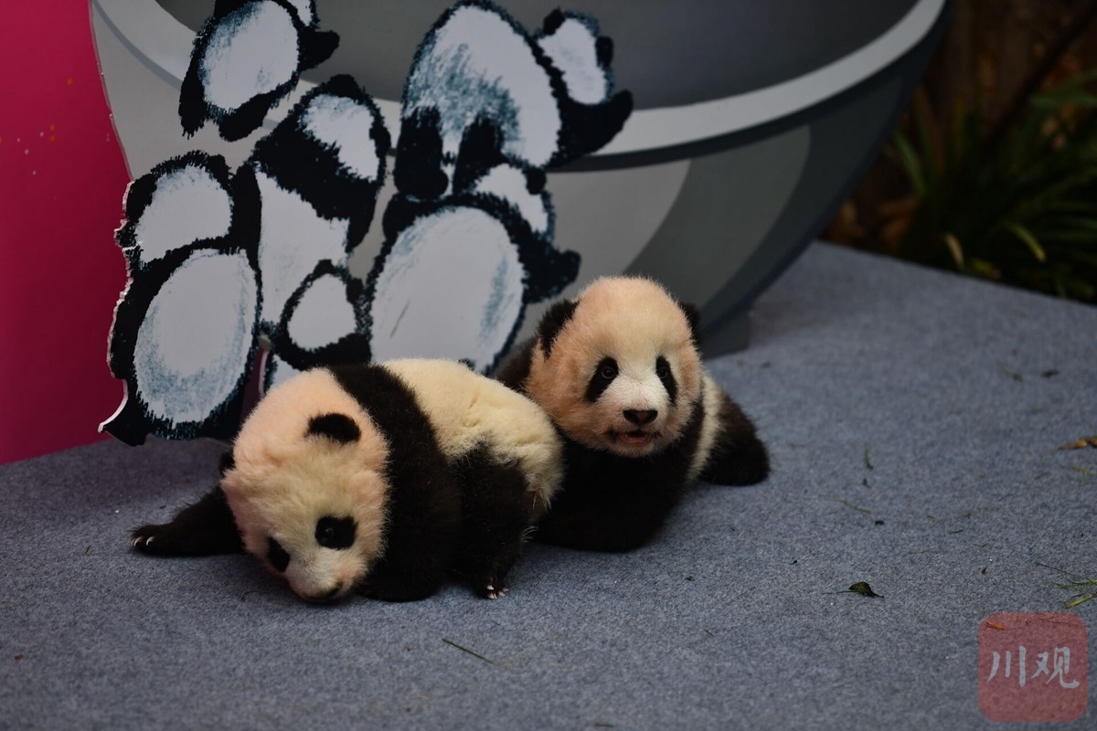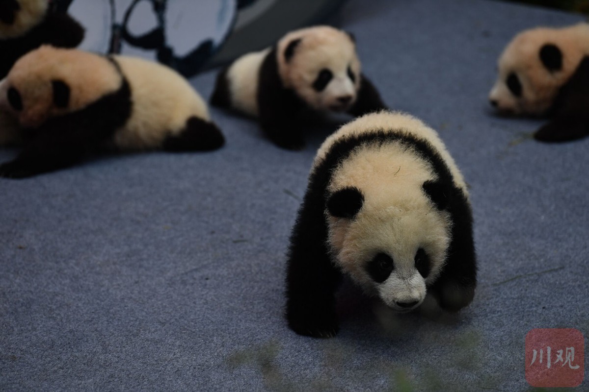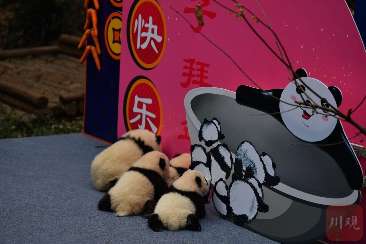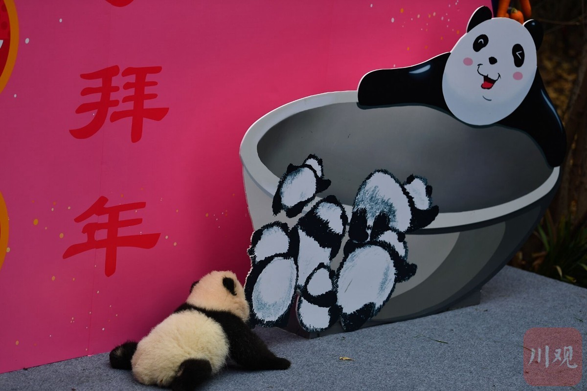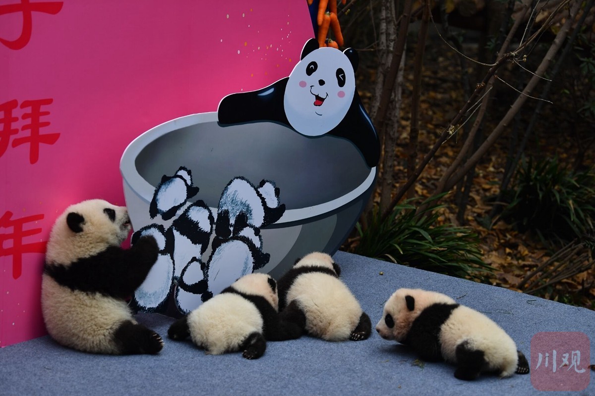 此次参与新春拜年的大熊猫幼仔均是生活在熊猫基地月亮产房的宝宝,除了之前就和大家见过面的“润玥”“艾玖”“和花”“和叶”之外,还有更年幼的“金喜”“金双”“福双”以及龙凤胎“强强”“国国”。