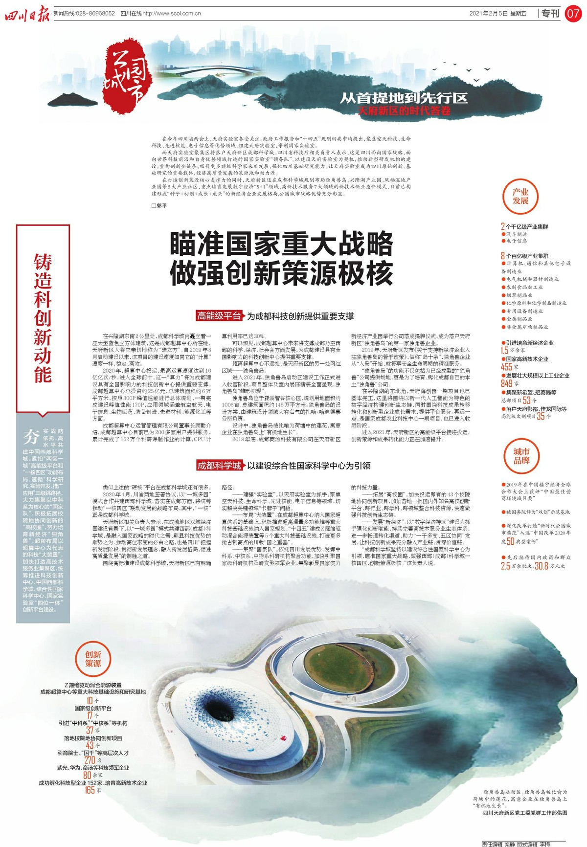 从“首提地”到“先行区”。2月5日,四川日报以4个整版的规模,系统呈现天府新区三年来在公园城市建设工作中取得的巨大成果。