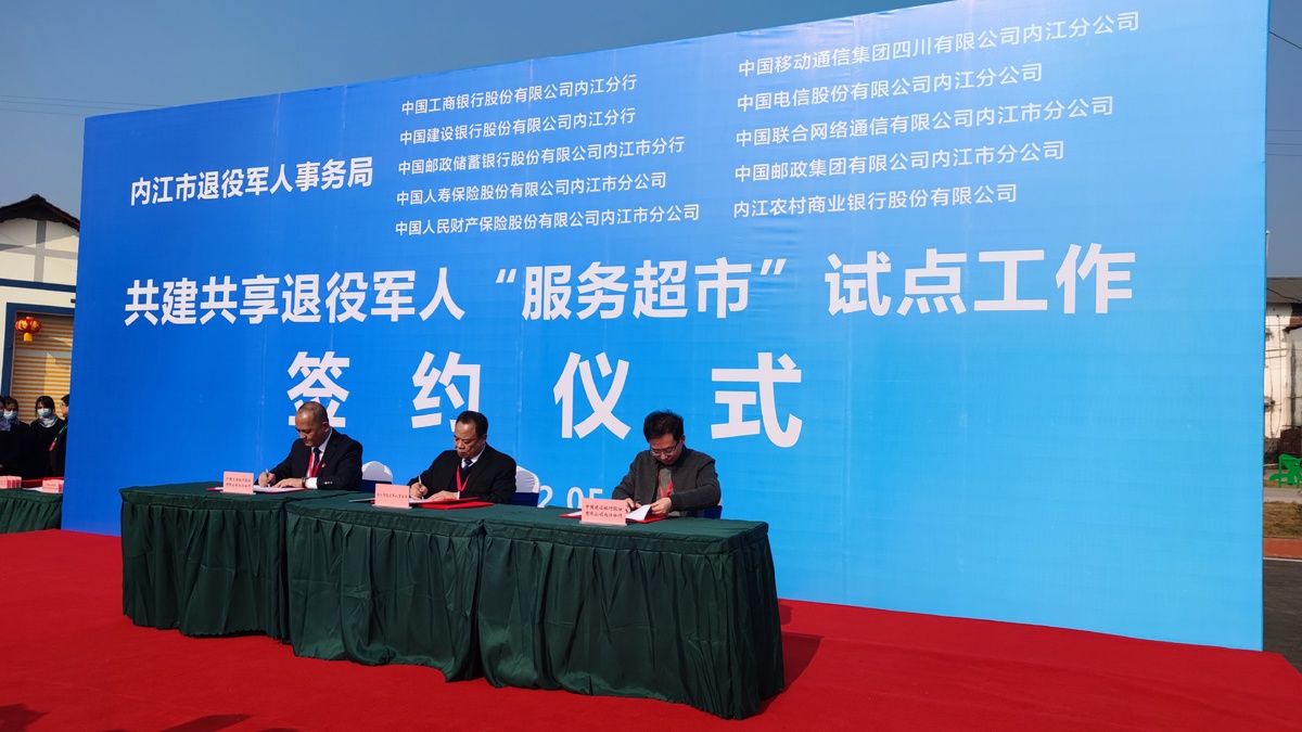 2月5日,在内江市东兴区椑木镇退役军人服务站双拥广场,内江举行共建共享退役军人“服务超市”试点工作合作签约仪式。活动现场,椑木镇退役军人“服务超市”开张,标志着内江首个退役军人“服务超市”开始运营。