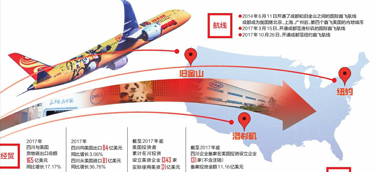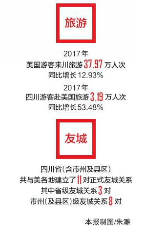 2016年9月,美国作为主宾国参加第四届中国(绵阳)科技城国际科技博览会,设立展出面积约3500平方米的美国馆,同时参与举办中美省州经贸合作座谈会、中美省州高科技合作研讨会、“选择美国”路演等活动……去年离任的美国驻成都总领事谷立言感叹,在他三年任期内,明显感受到四川与美国在经贸、文化、旅游、医疗、教育、创新创业等领域的合作一年比一年密切。