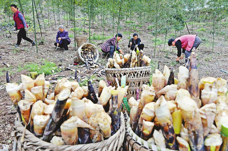 彭州市红岩镇虎形村千亩笋用竹基地,村民在挖雷竹笋。川报观察记者 李向雨 摄(资料图片)