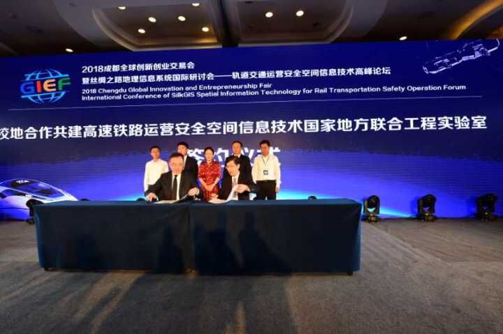 5月25日,成都市新都区与西南交通大学联合举办2018成都全球创新创业交易会暨丝绸之路地理信息系统国际研讨会——轨道交通运营安全空间信息技术高峰论坛。