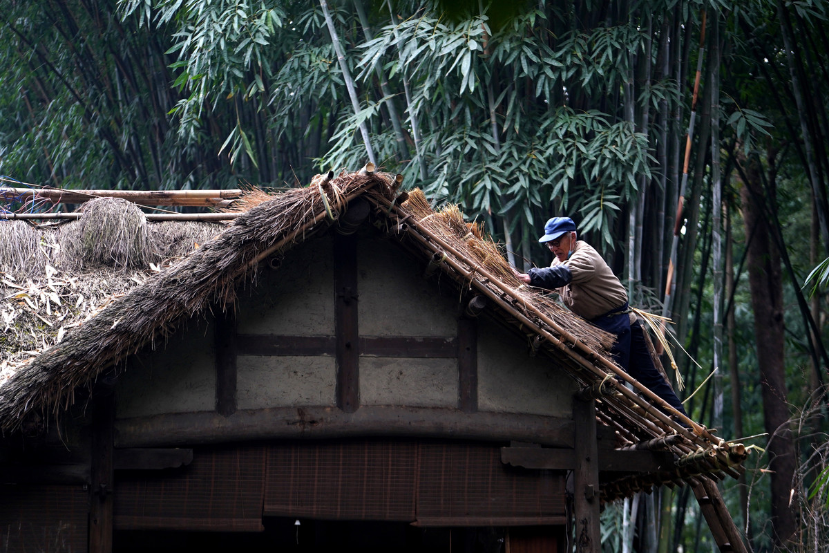 “我们没读过什么书,但盖茅屋的手艺是实打实的。”周礼春说。没有这些茅屋盖匠,杜甫草堂茅屋无法还原成如今的模样。