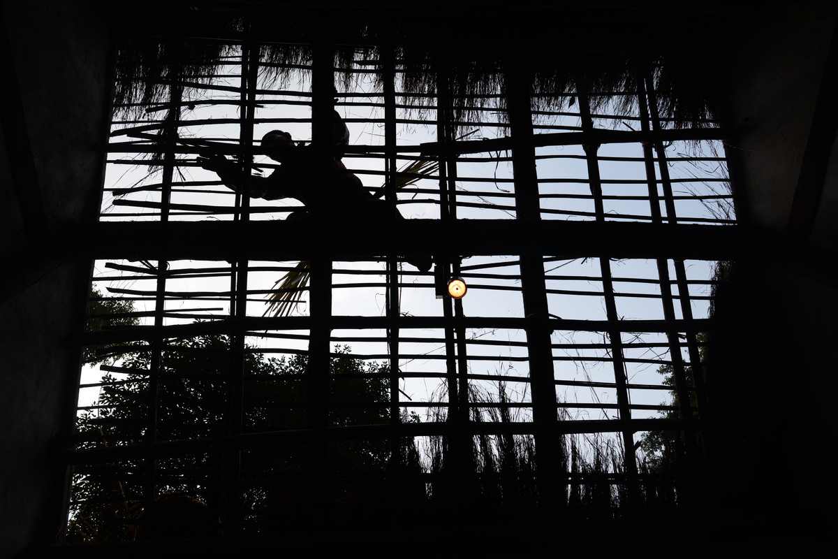 盖茅草屋工序繁琐,没有文字记录,更没有操作说明,只能靠着师傅的言传身教。“师傅也不会告诉你技巧,全靠自己眼睛看,手上练,自己去悟。”刘瑞寅说,各种步骤、各式屋顶,先要统统跟上一遍,“没有几年时间,见不全的。”