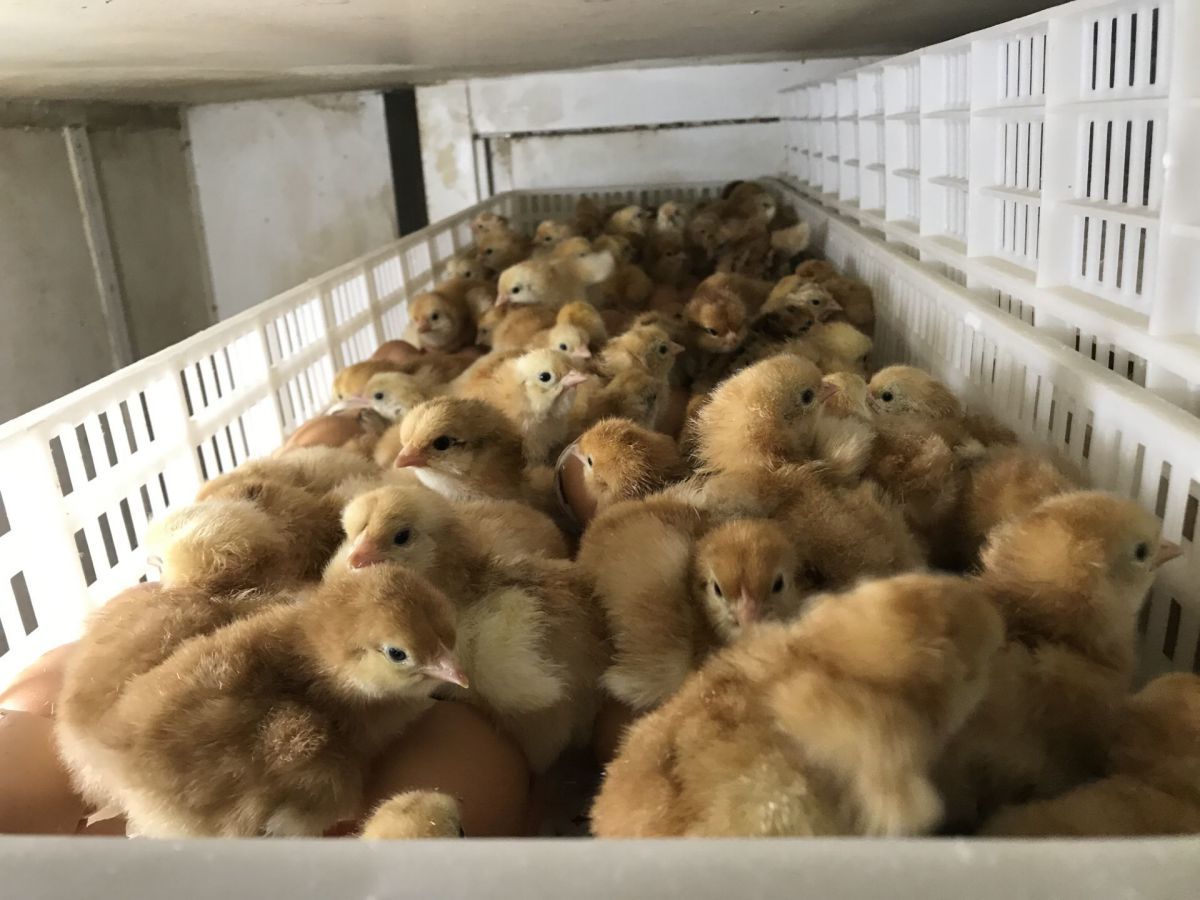 “这批鸡苗品种为‘九斤黄’(浦东鸡),主要销往周边的养殖场,另外还有‘青脚’‘乌骨鸡’等品种。受过精的鸡蛋在孵化室待18天,然后在出壳室待3天,打完疫苗后就可以出售了。”公司负责人杨平介绍,“在春节后的高峰期,预计每天出栏鸡苗增至2万羽以上。”